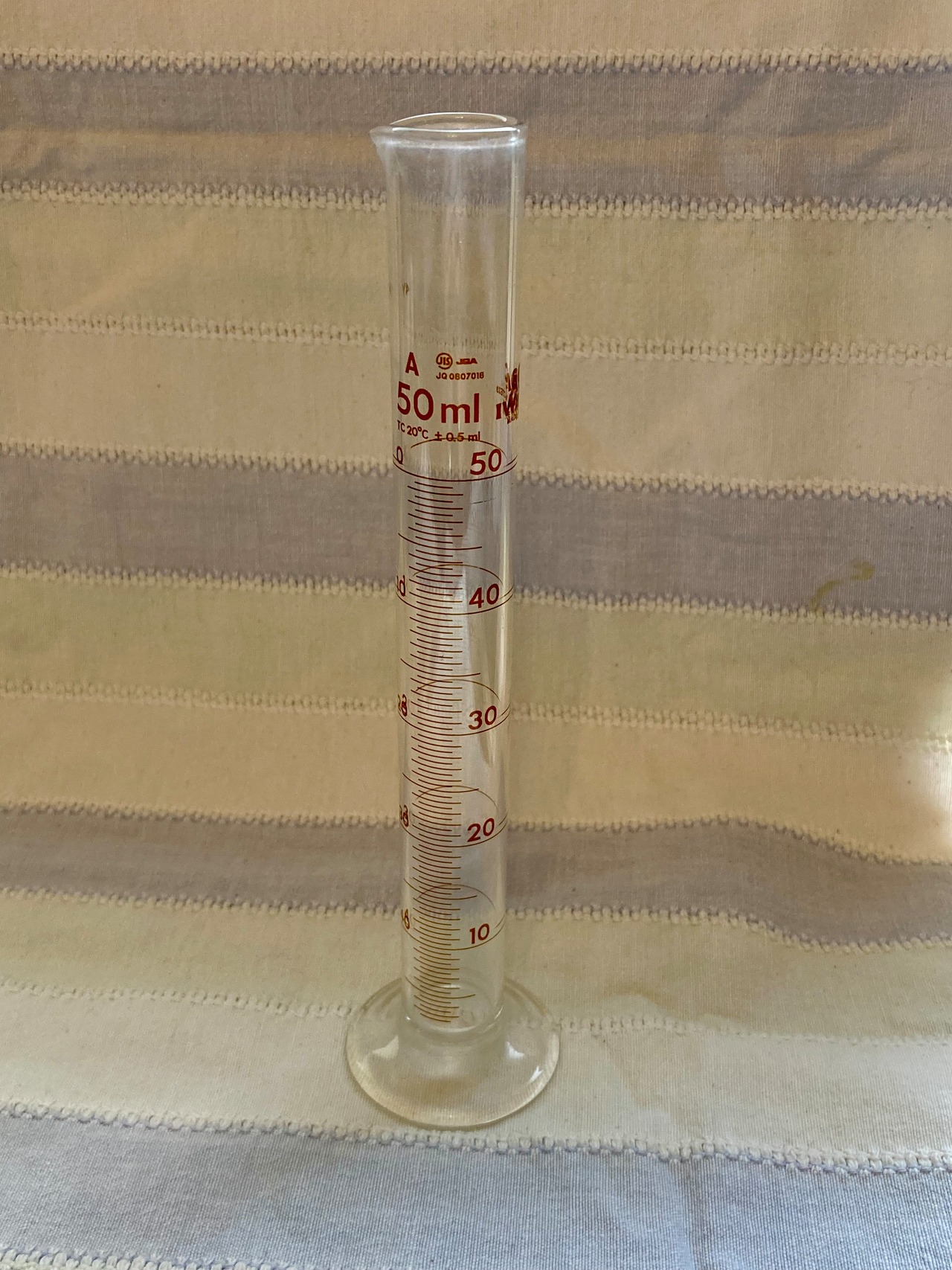 本来は実験や計測に使用される、Iwaki製硬質ガラス製のメスシリンダー