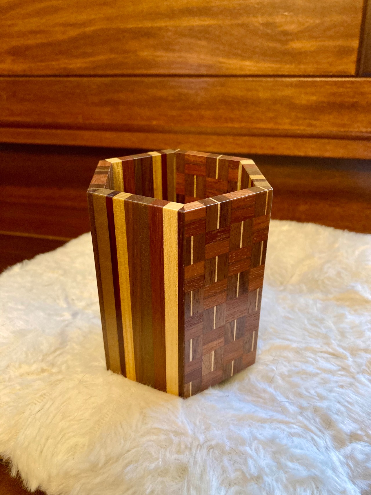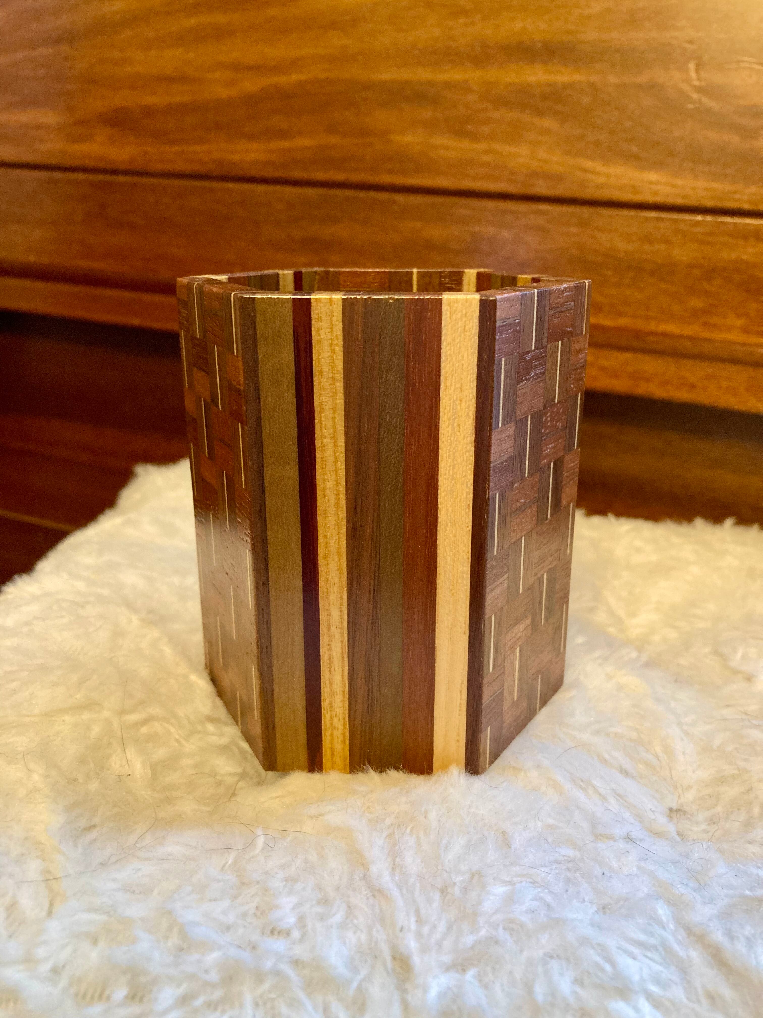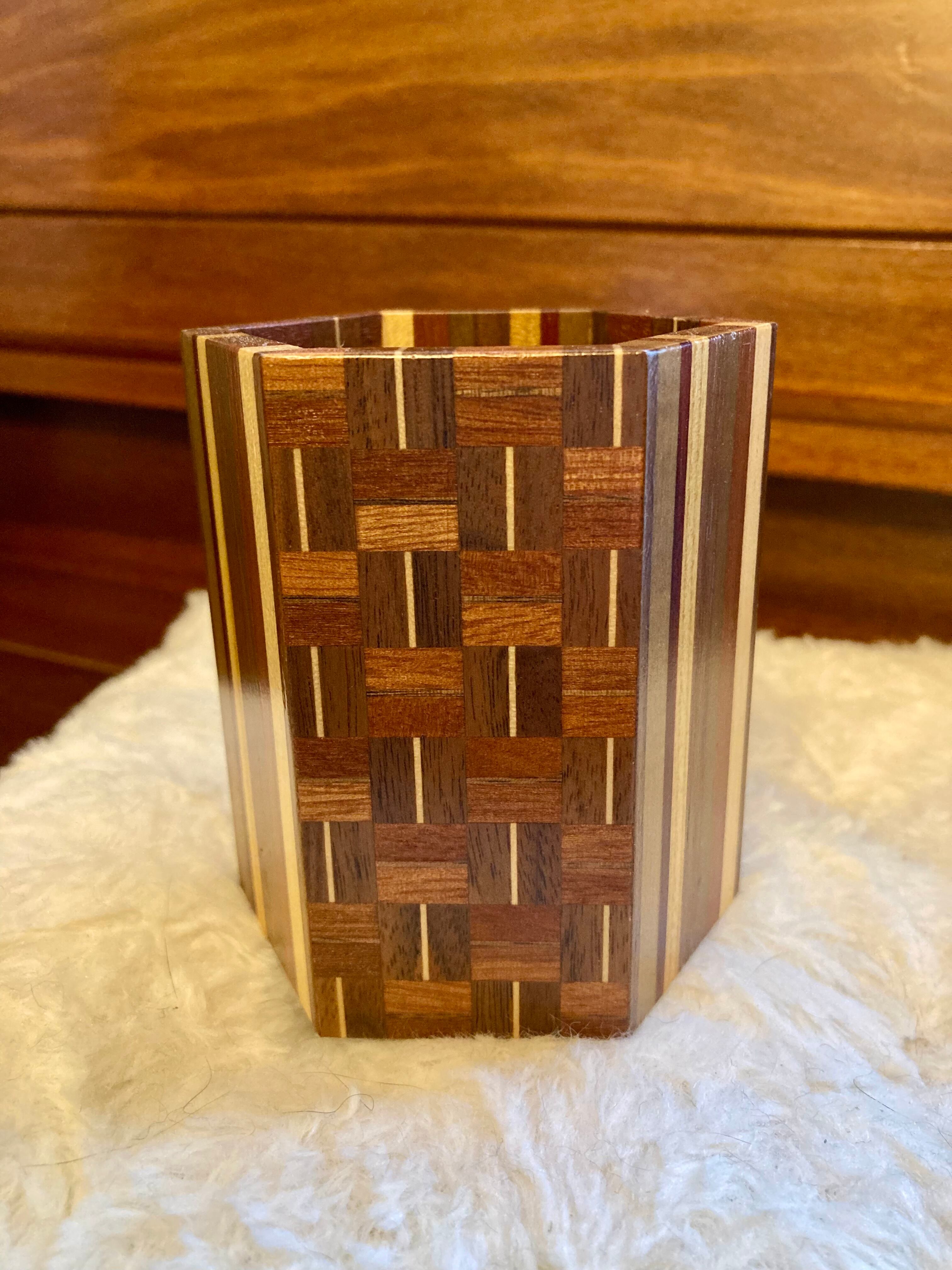美しい寄木細工で作られたペン立てです♪
