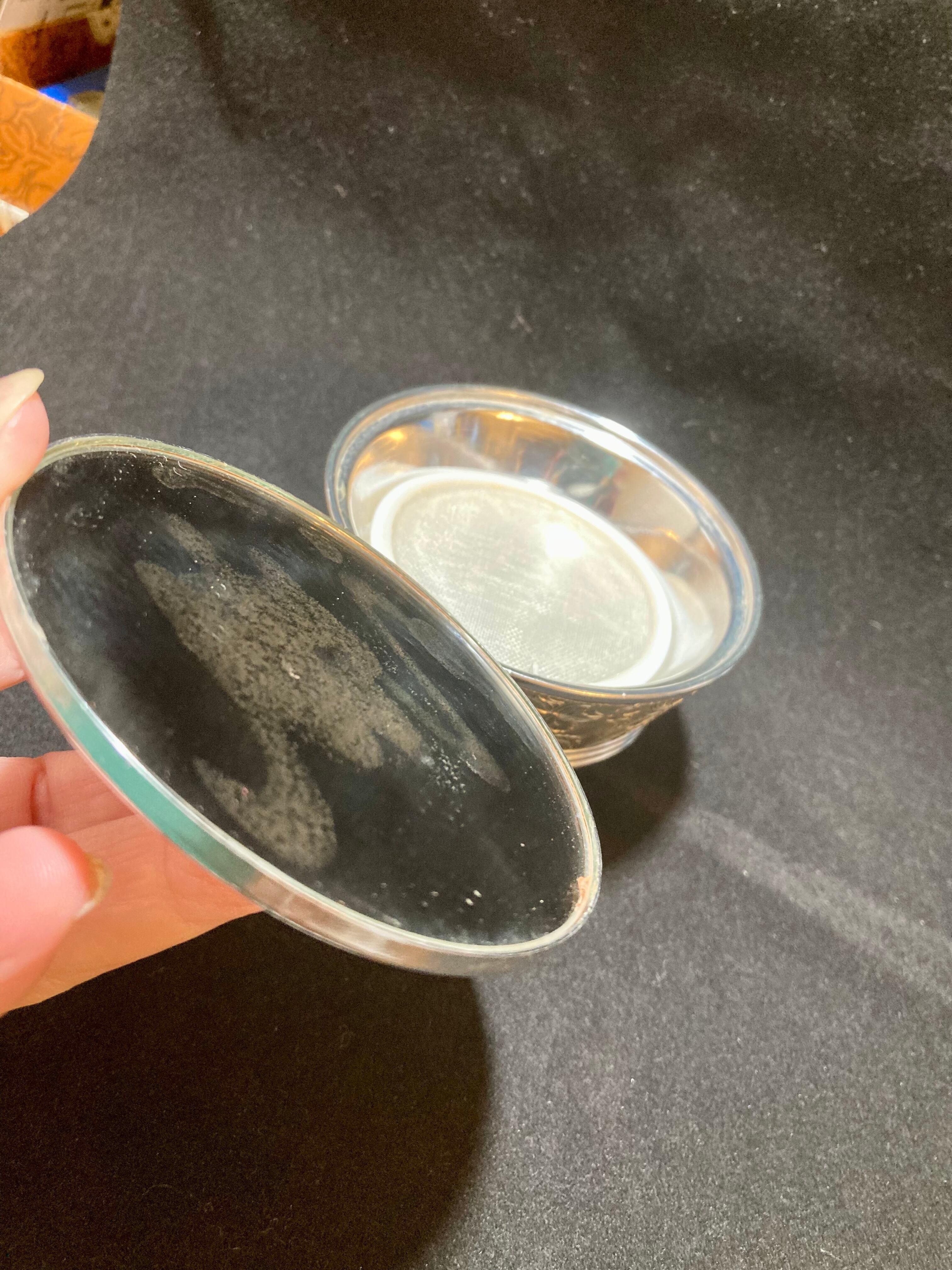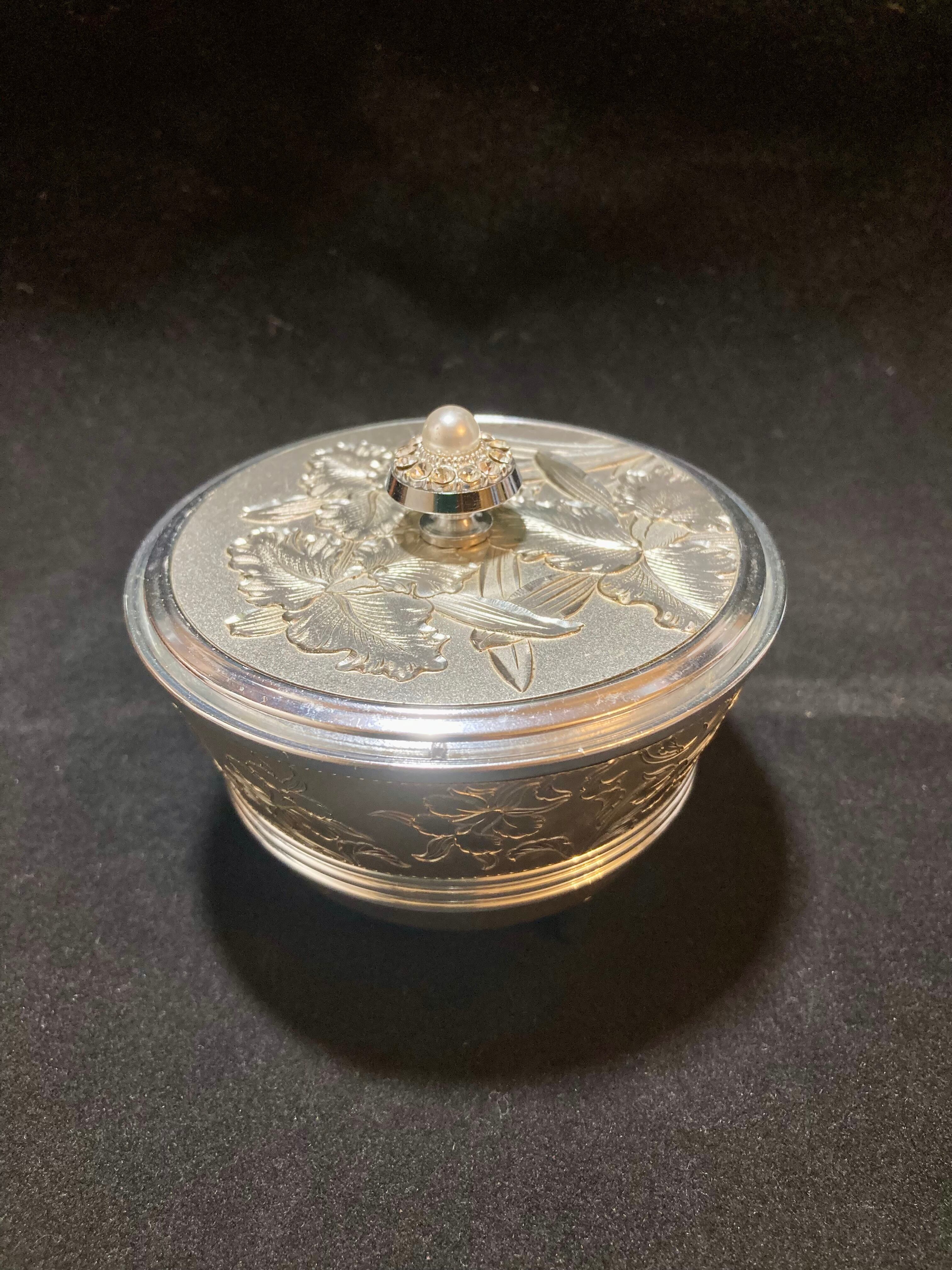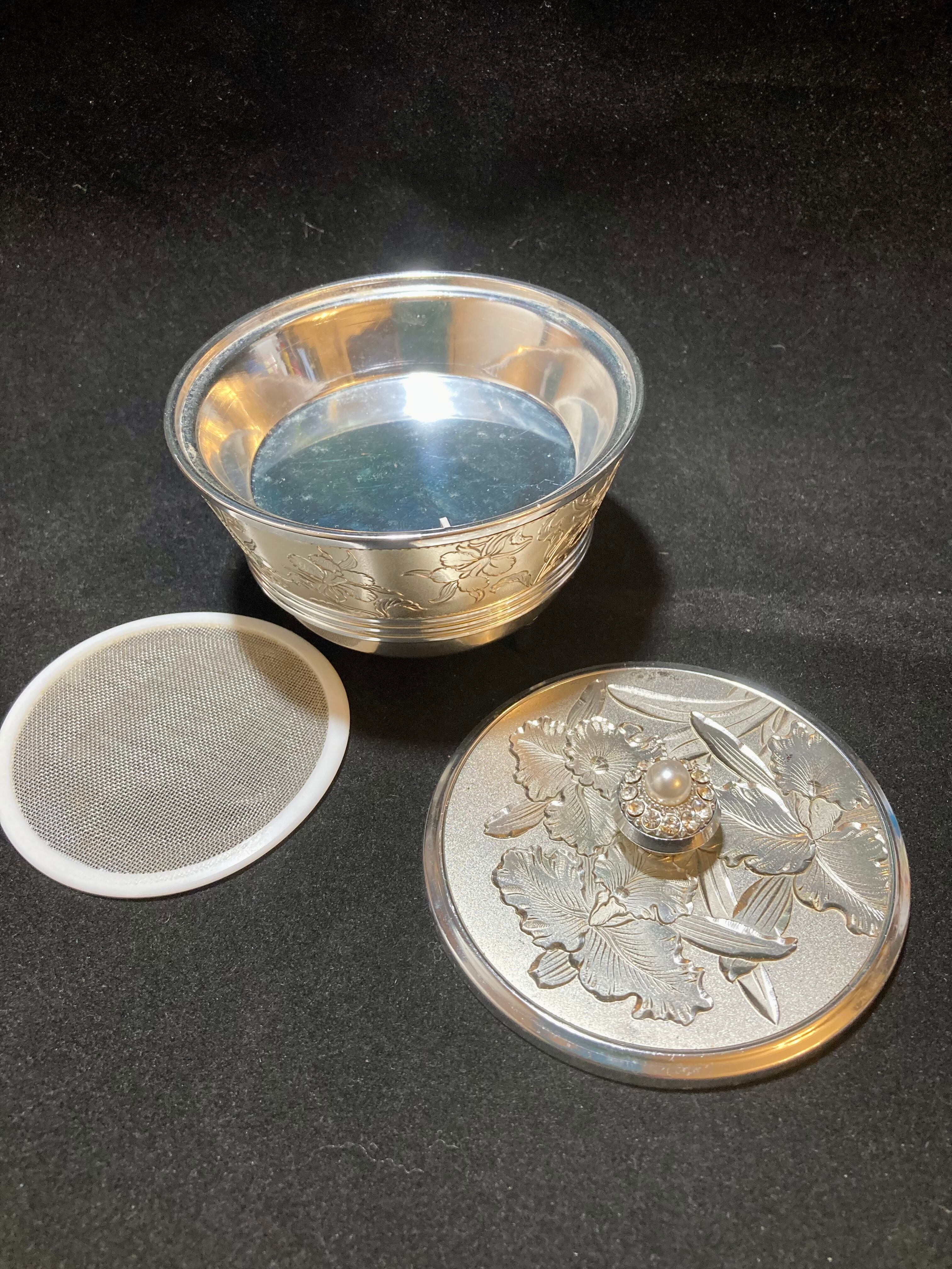 鏡付き、ネット素材の中敷があることから「おしろい入れ」としましたが、アクセサリーや小物入れにしていただいても良いと思います