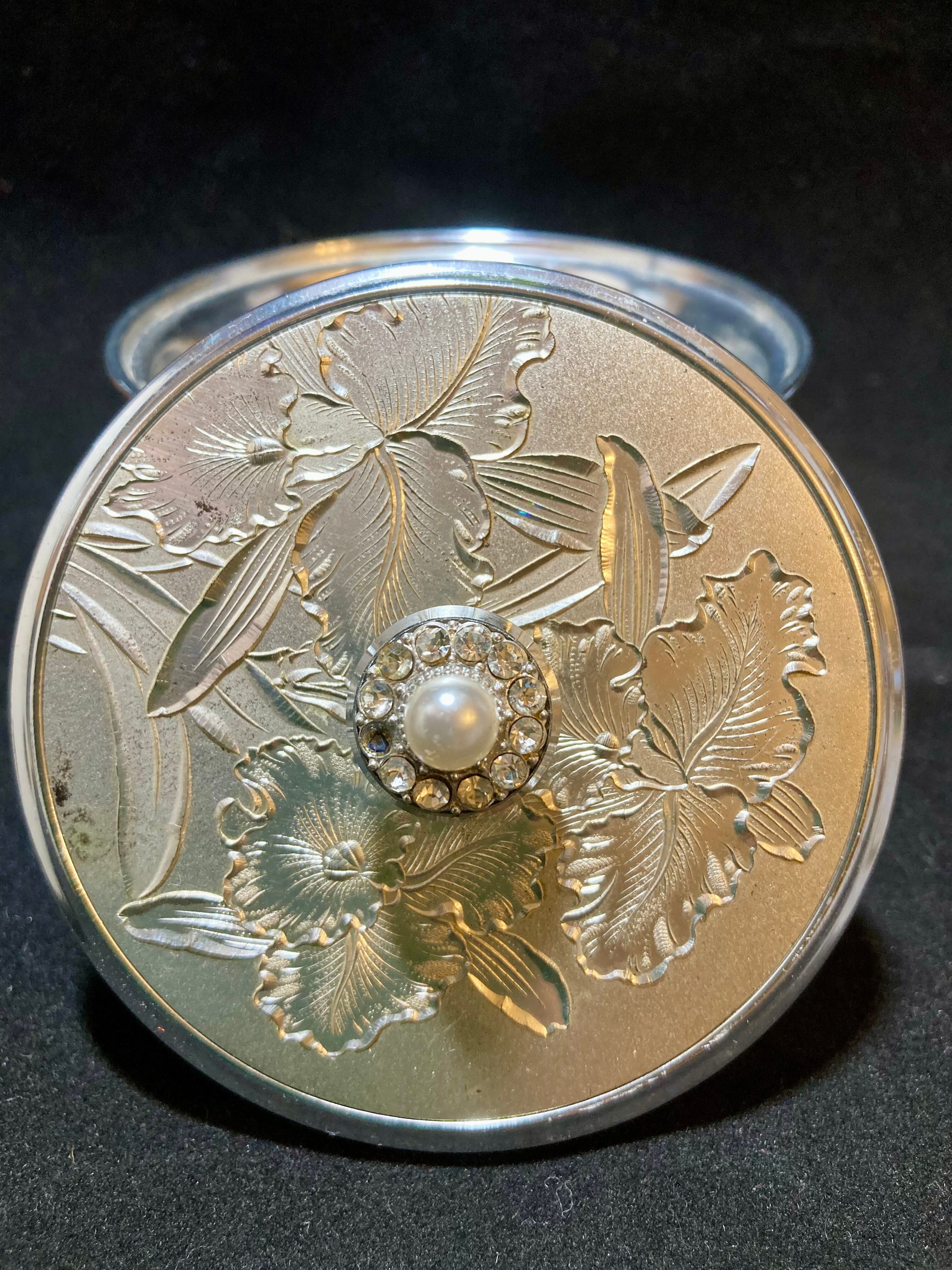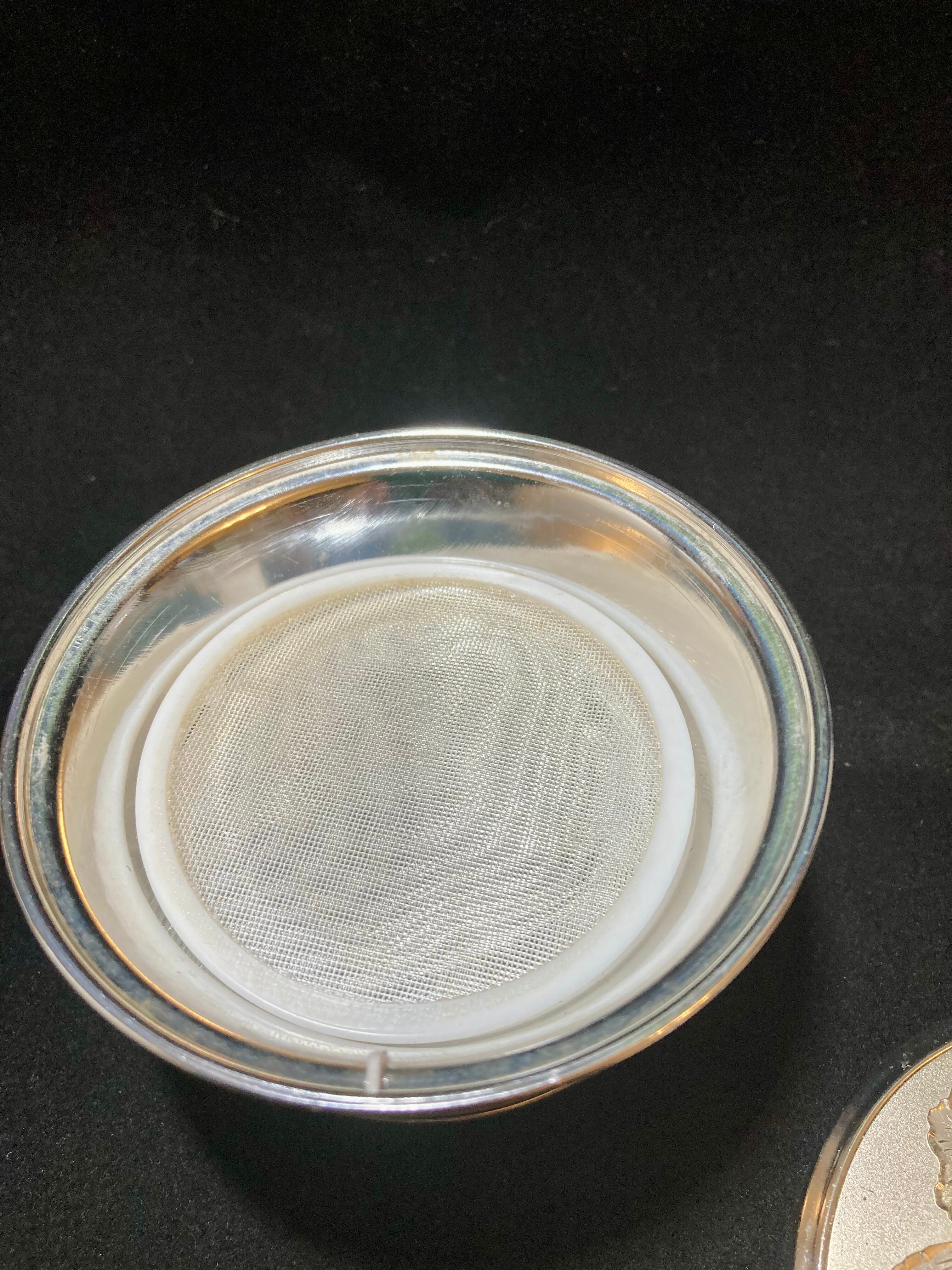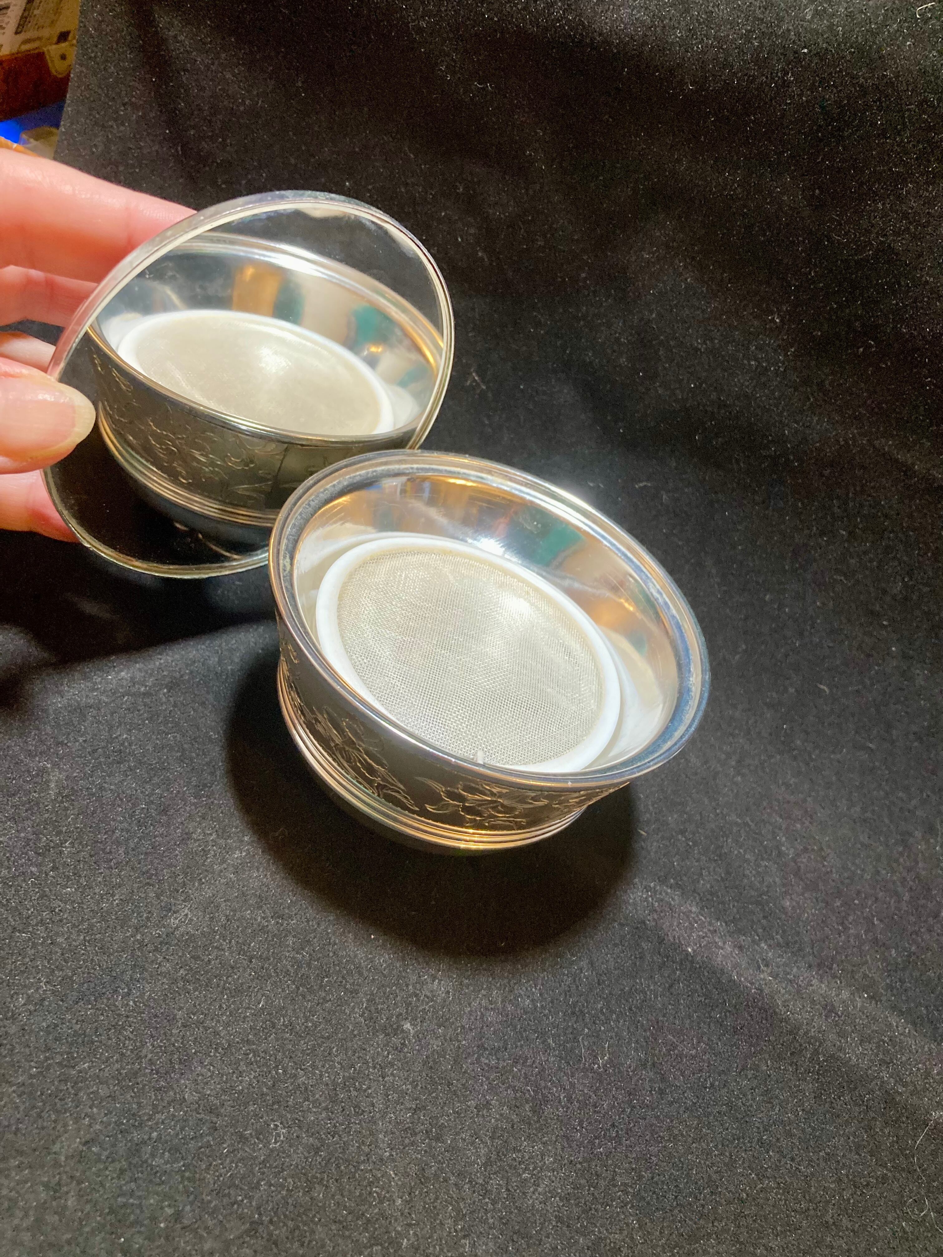 鏡付き、ネット素材の中敷があることから「おしろい入れ」としましたが、アクセサリーや小物入れにしていただいても良いと思います