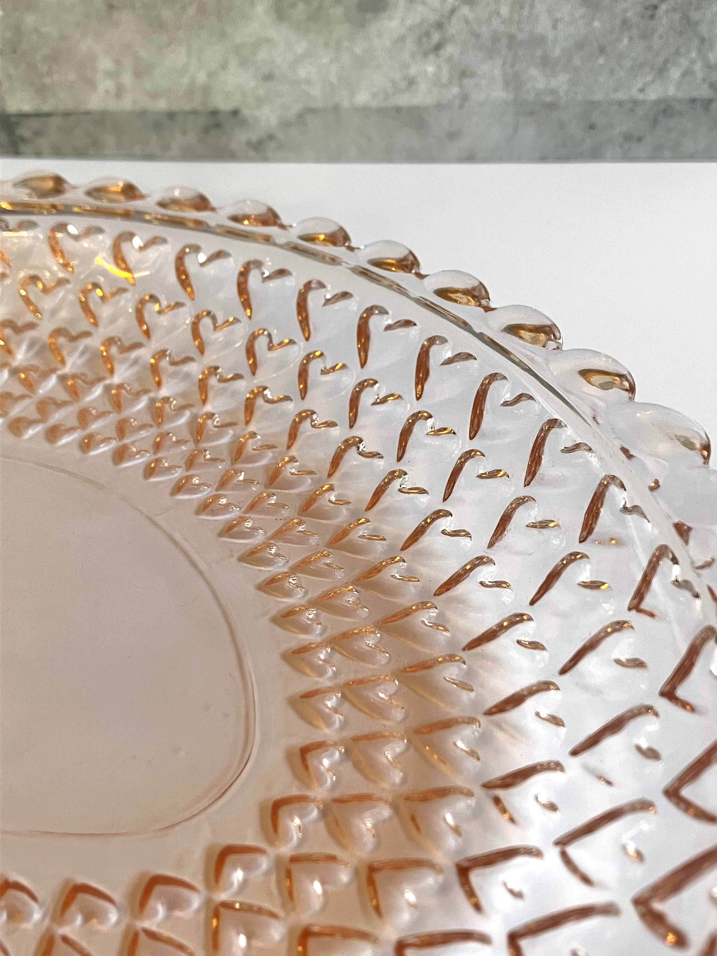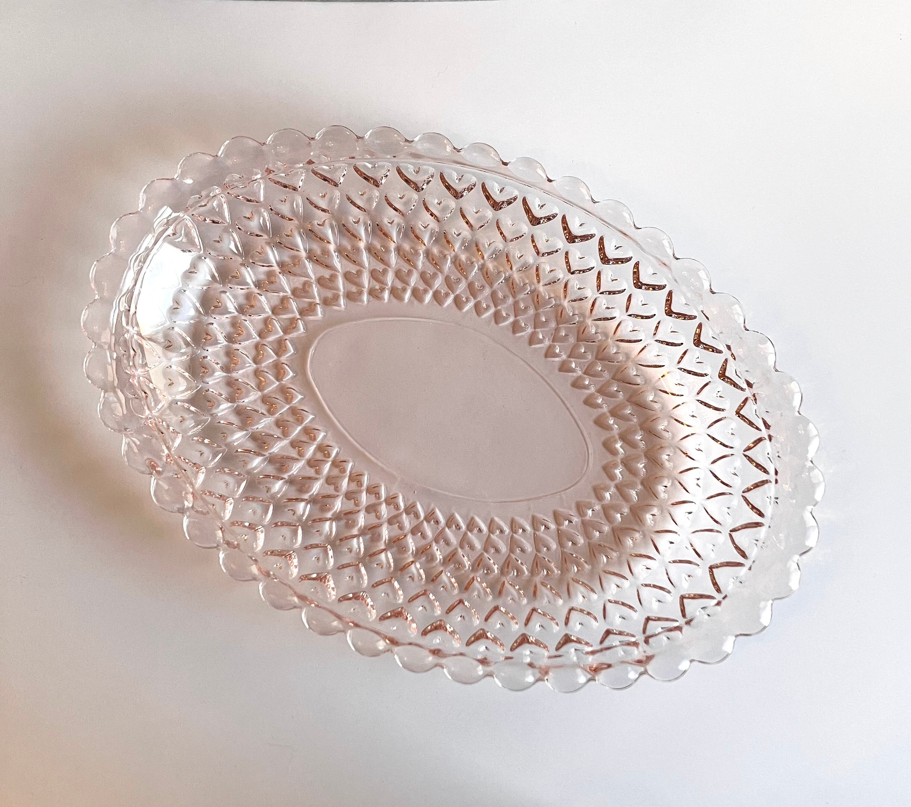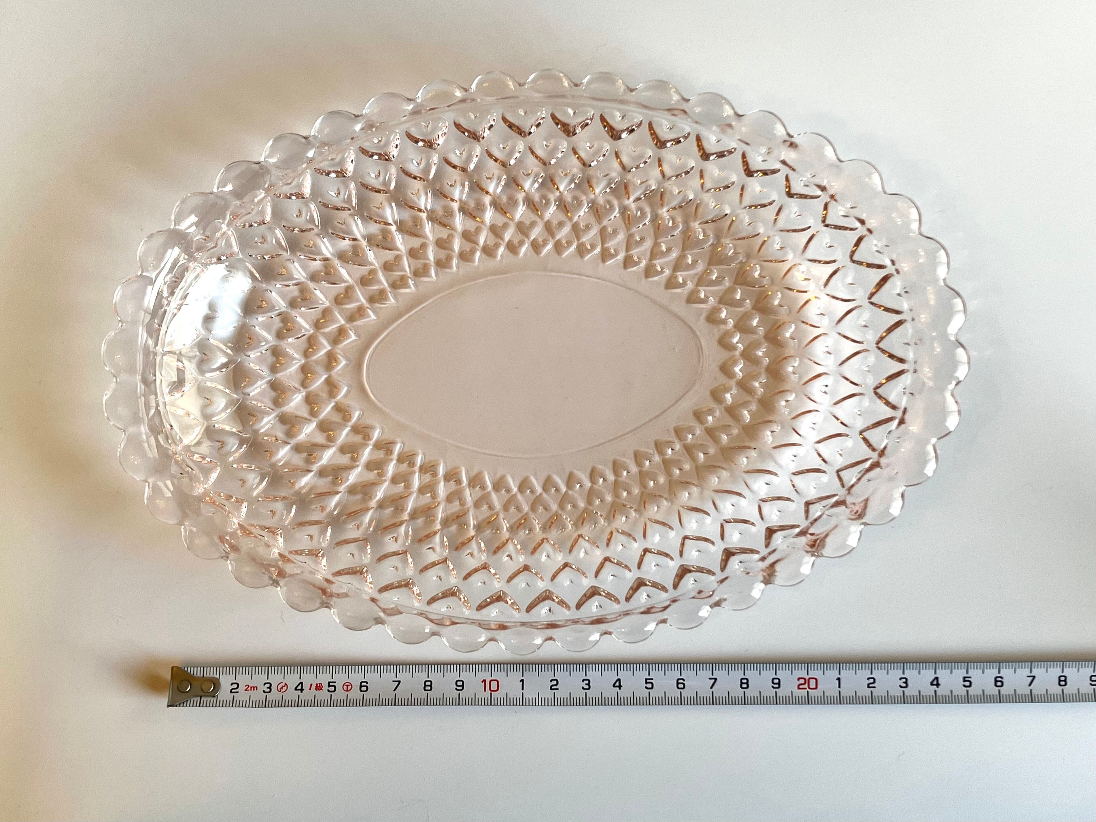 ガラス製 ピンクの大皿 ハートの模様がかわいいです♡