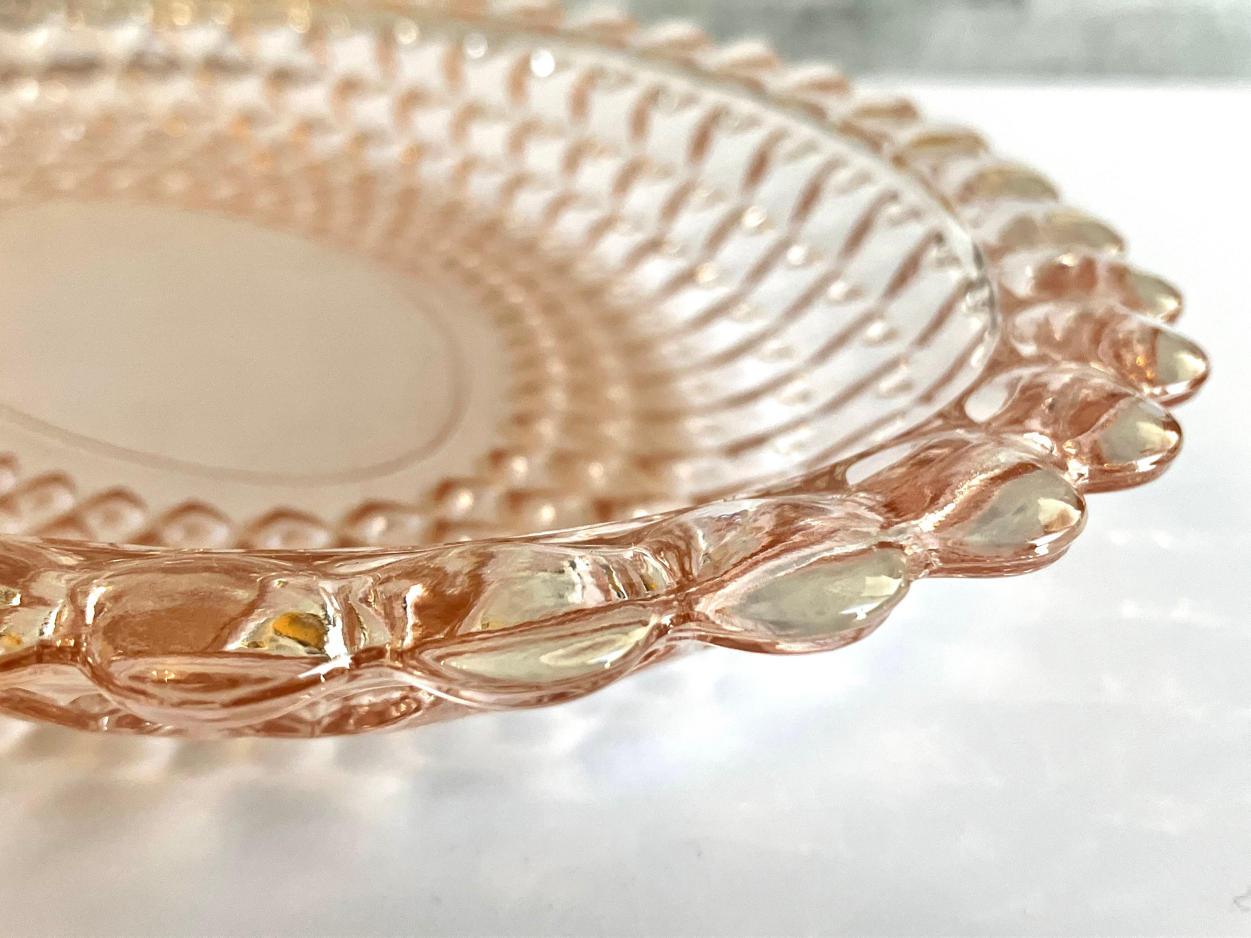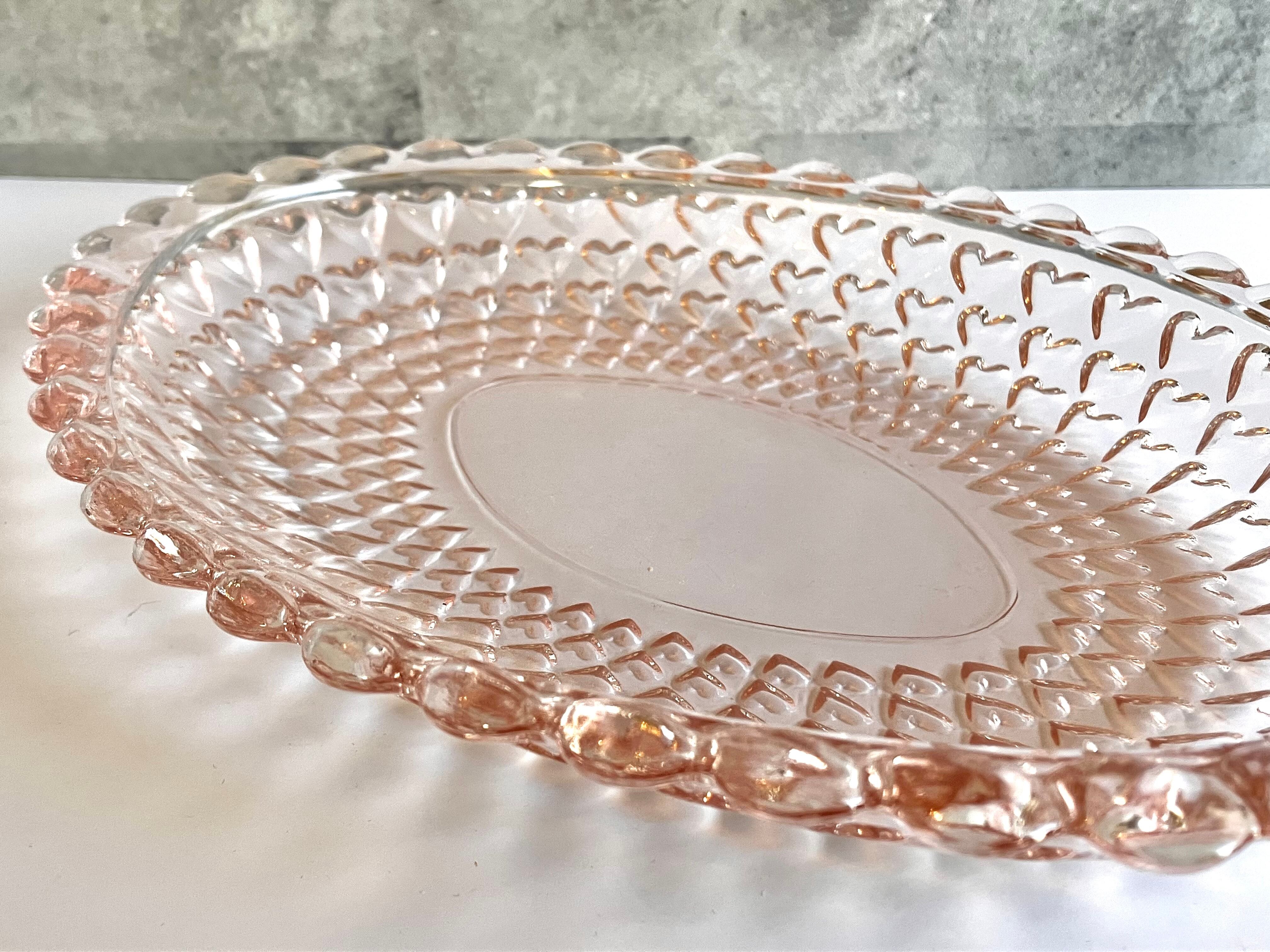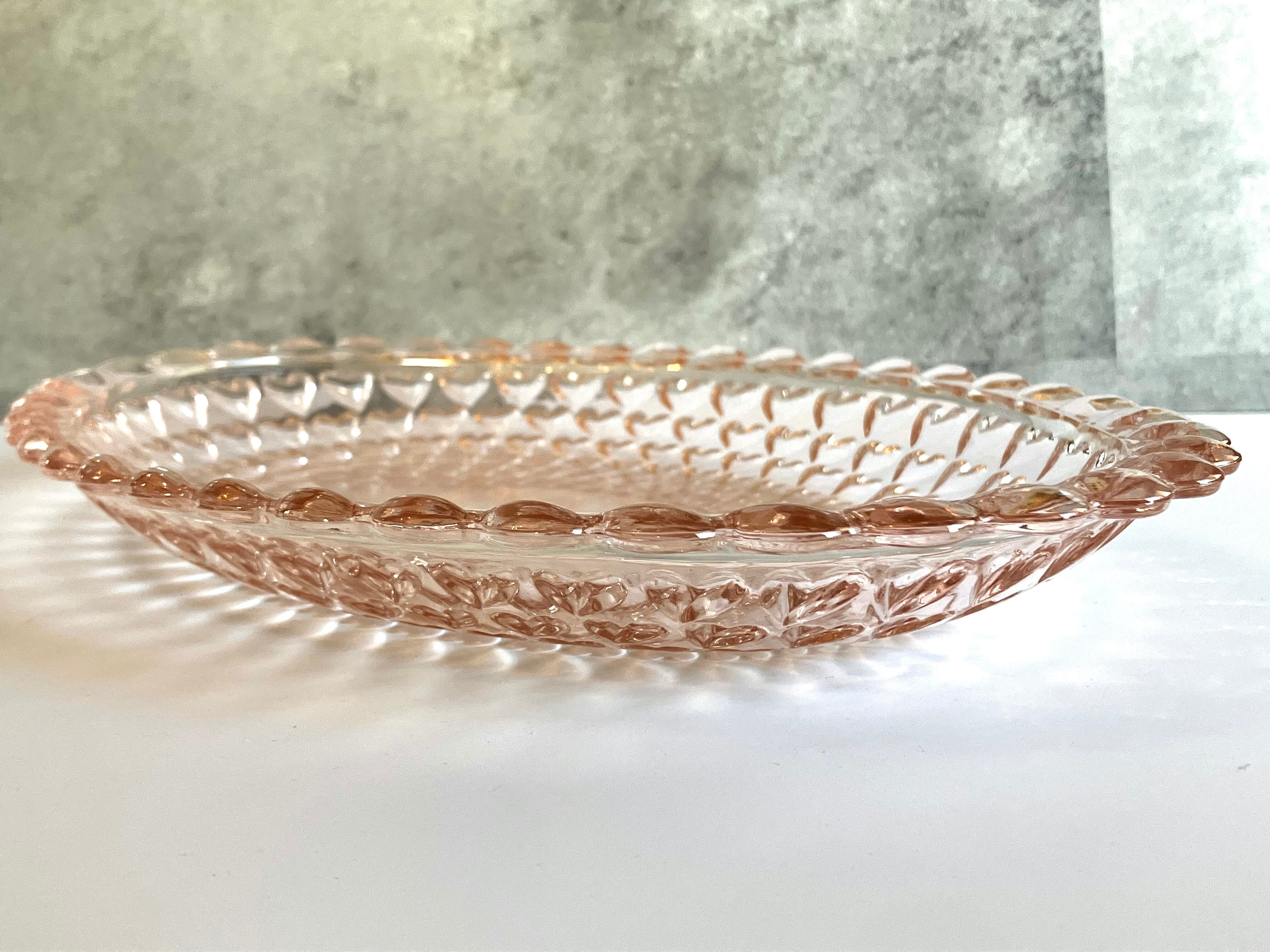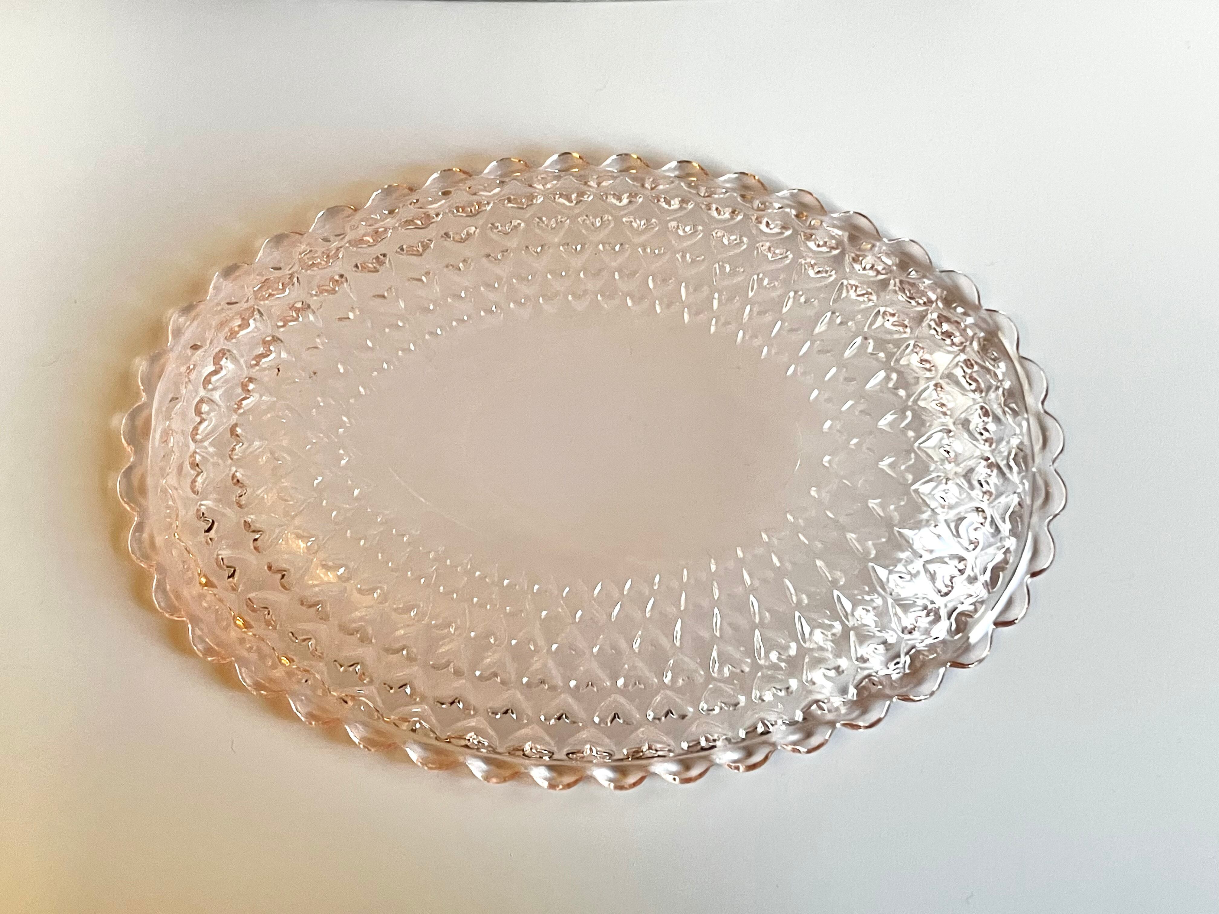 ガラス製 ピンクの大皿 ハートの模様がかわいいです♡