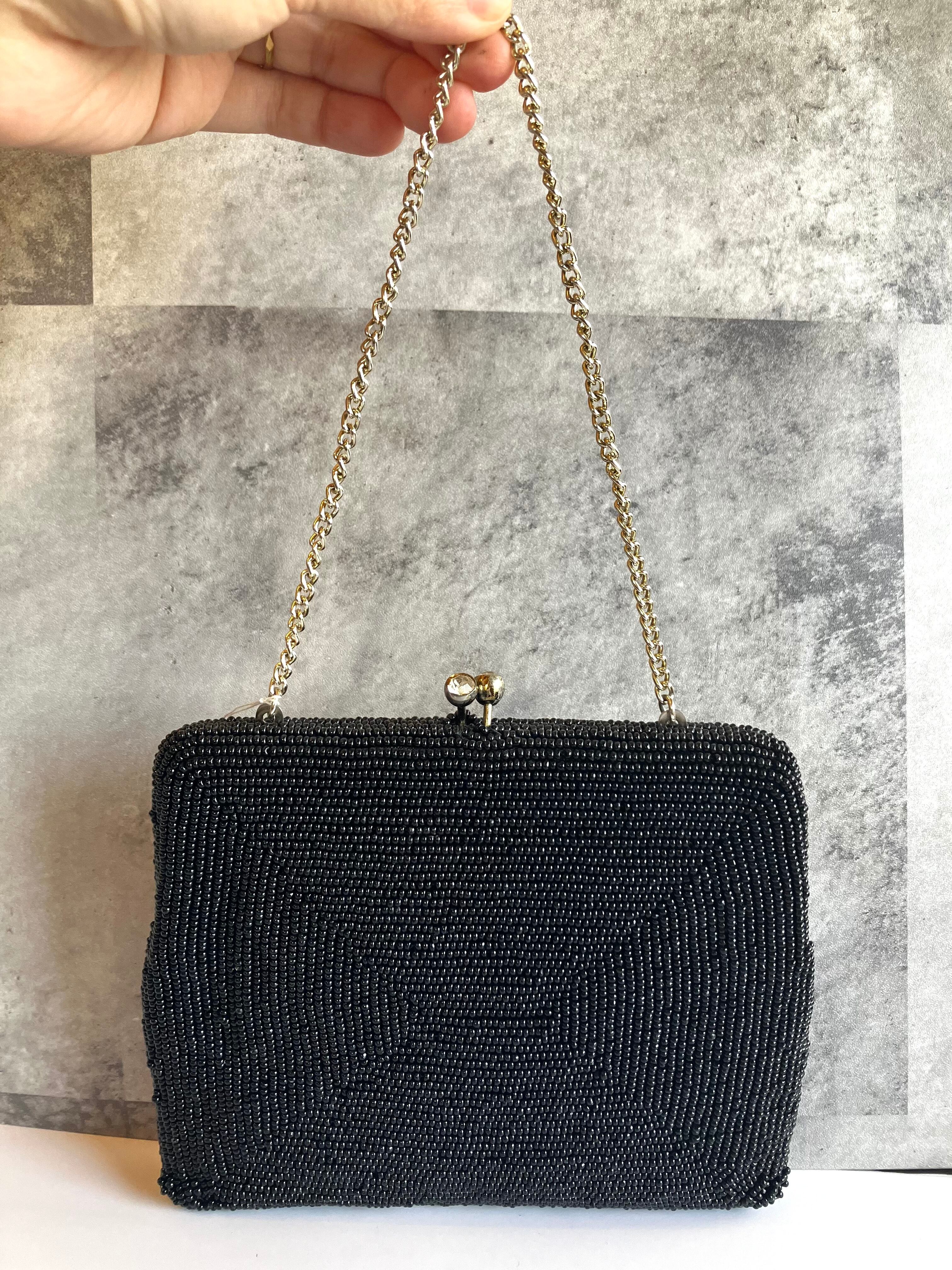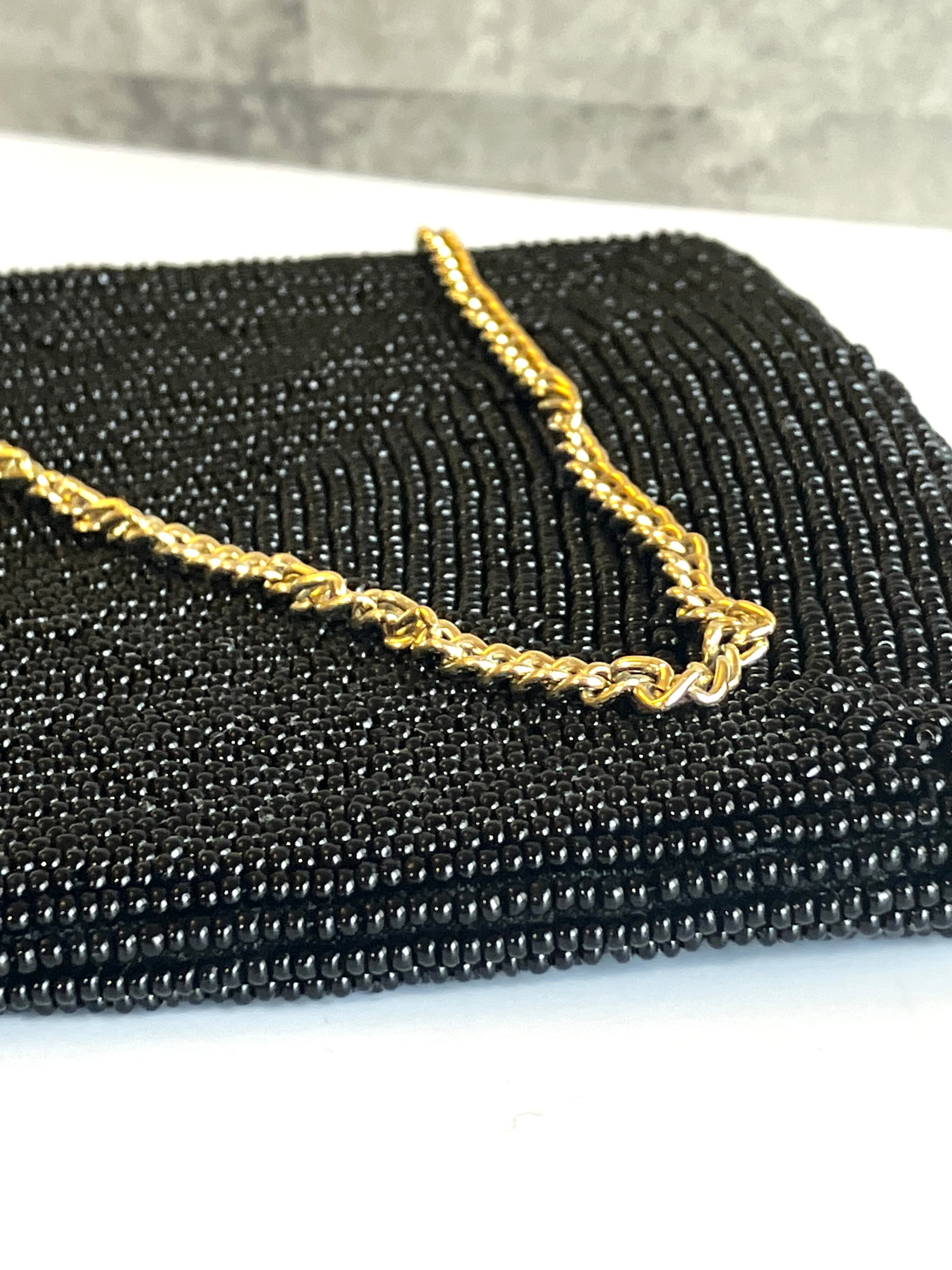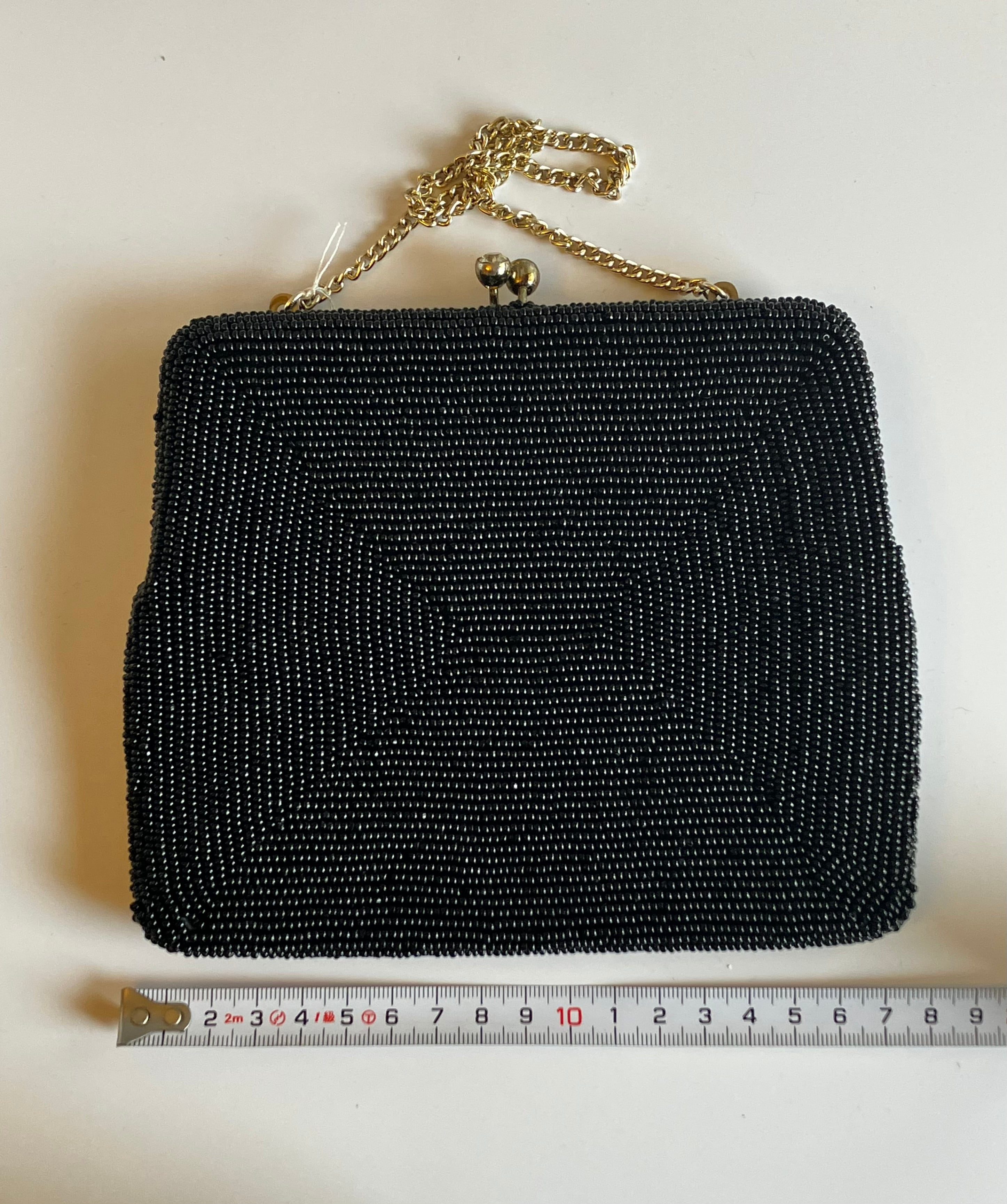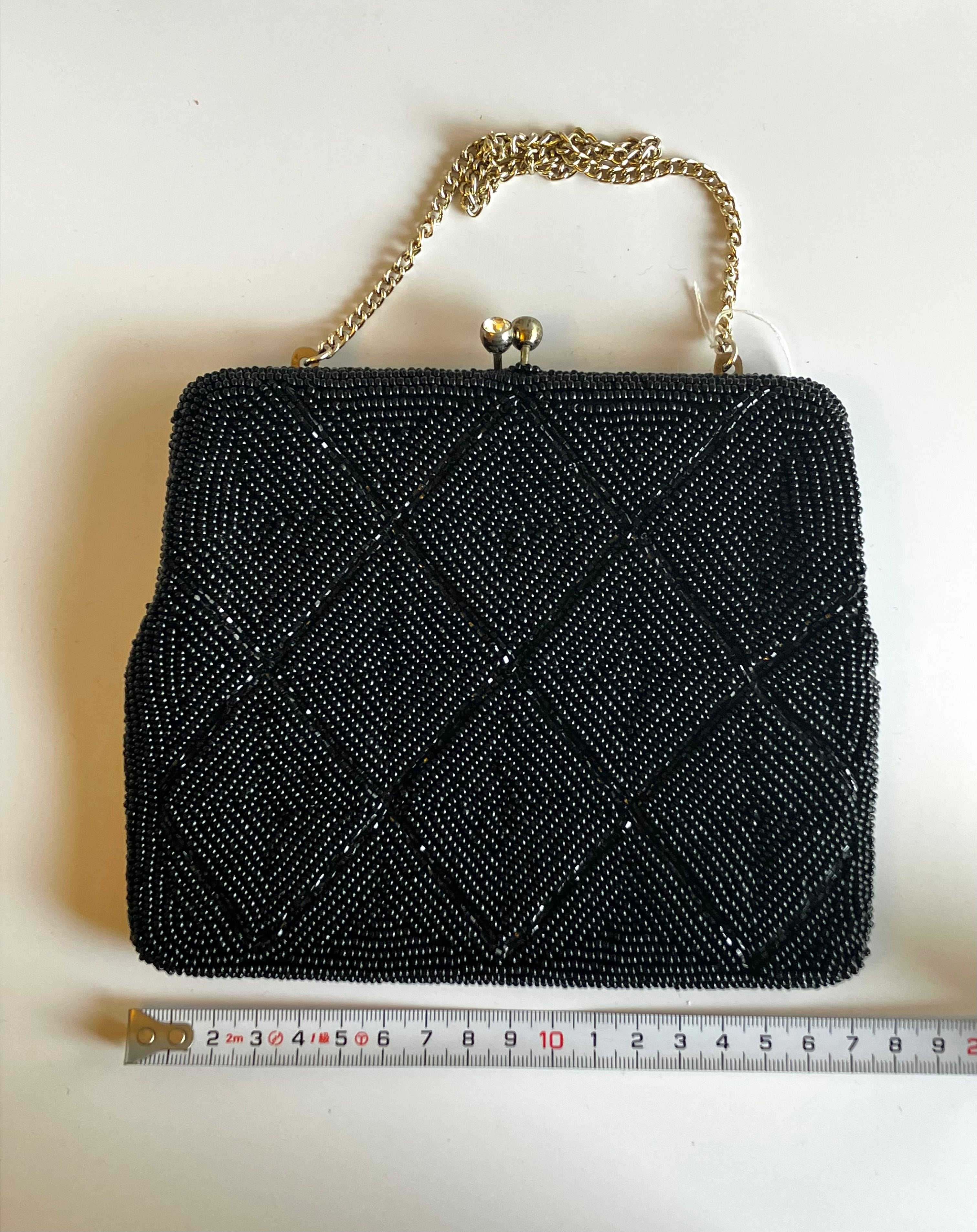 黒色のビーズバッグ 持ち手部分はチェーンです。