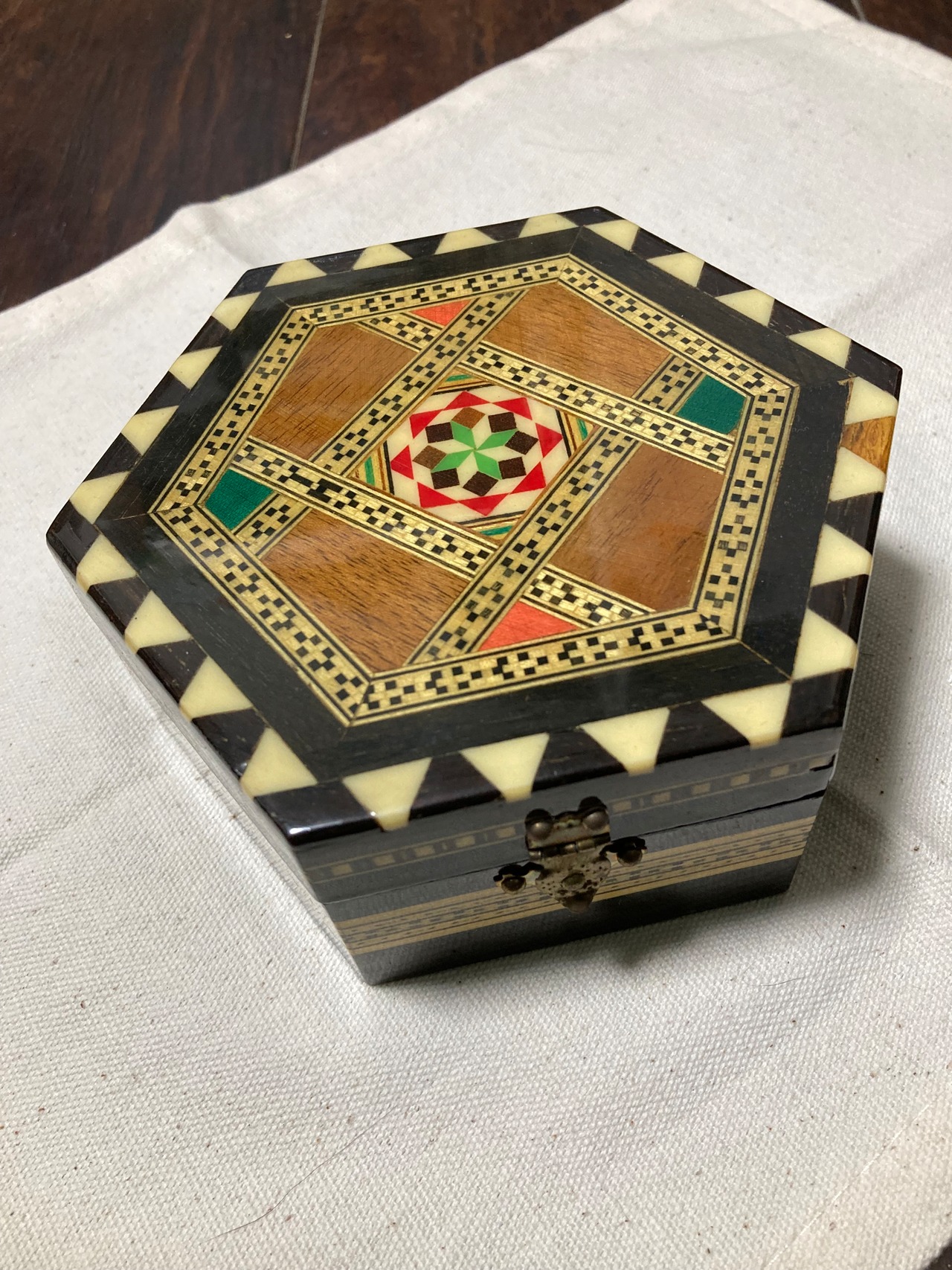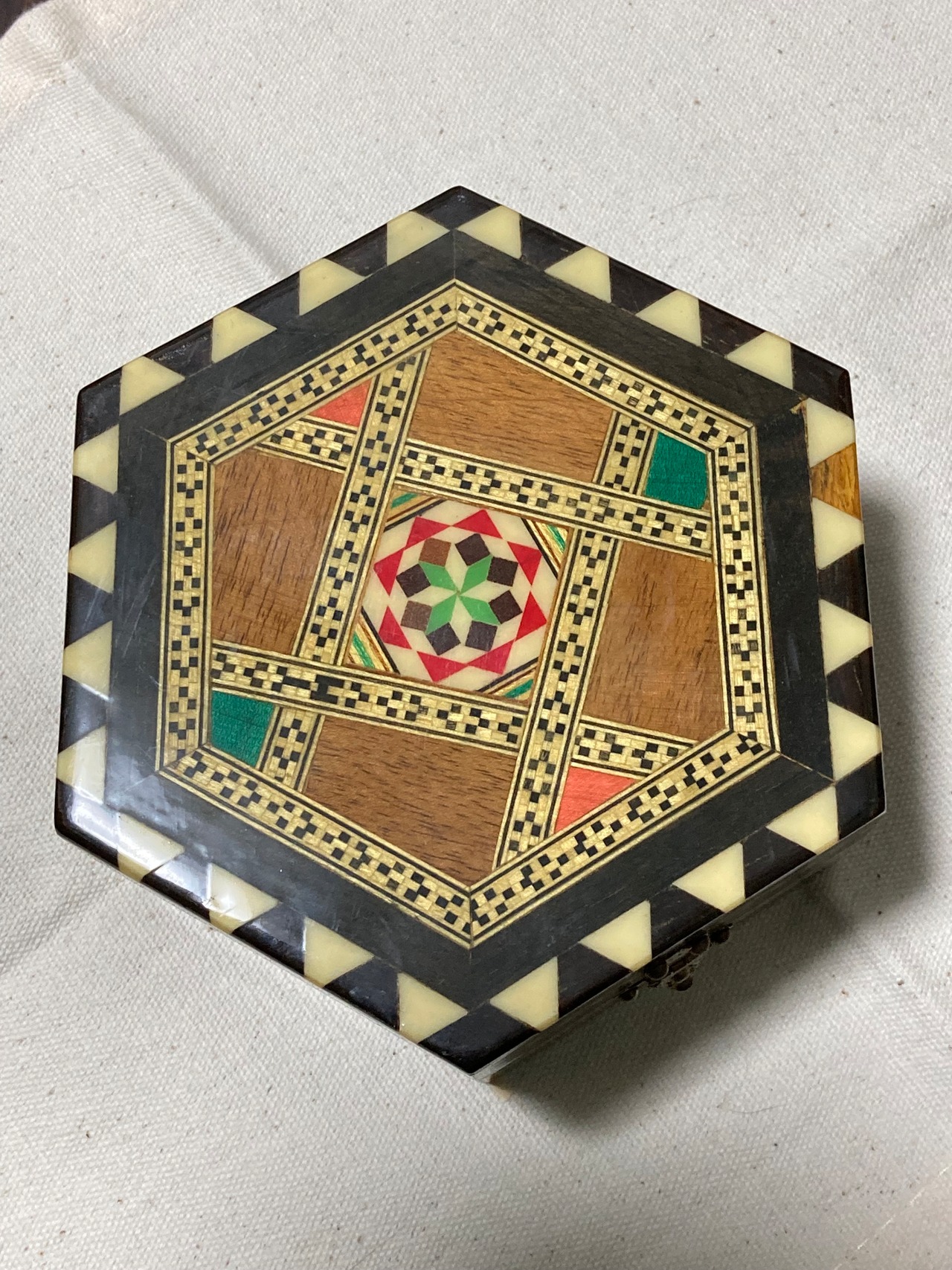 スペインのグラナダで作られた伝統工芸品「タラセア(寄木細工)」の小箱