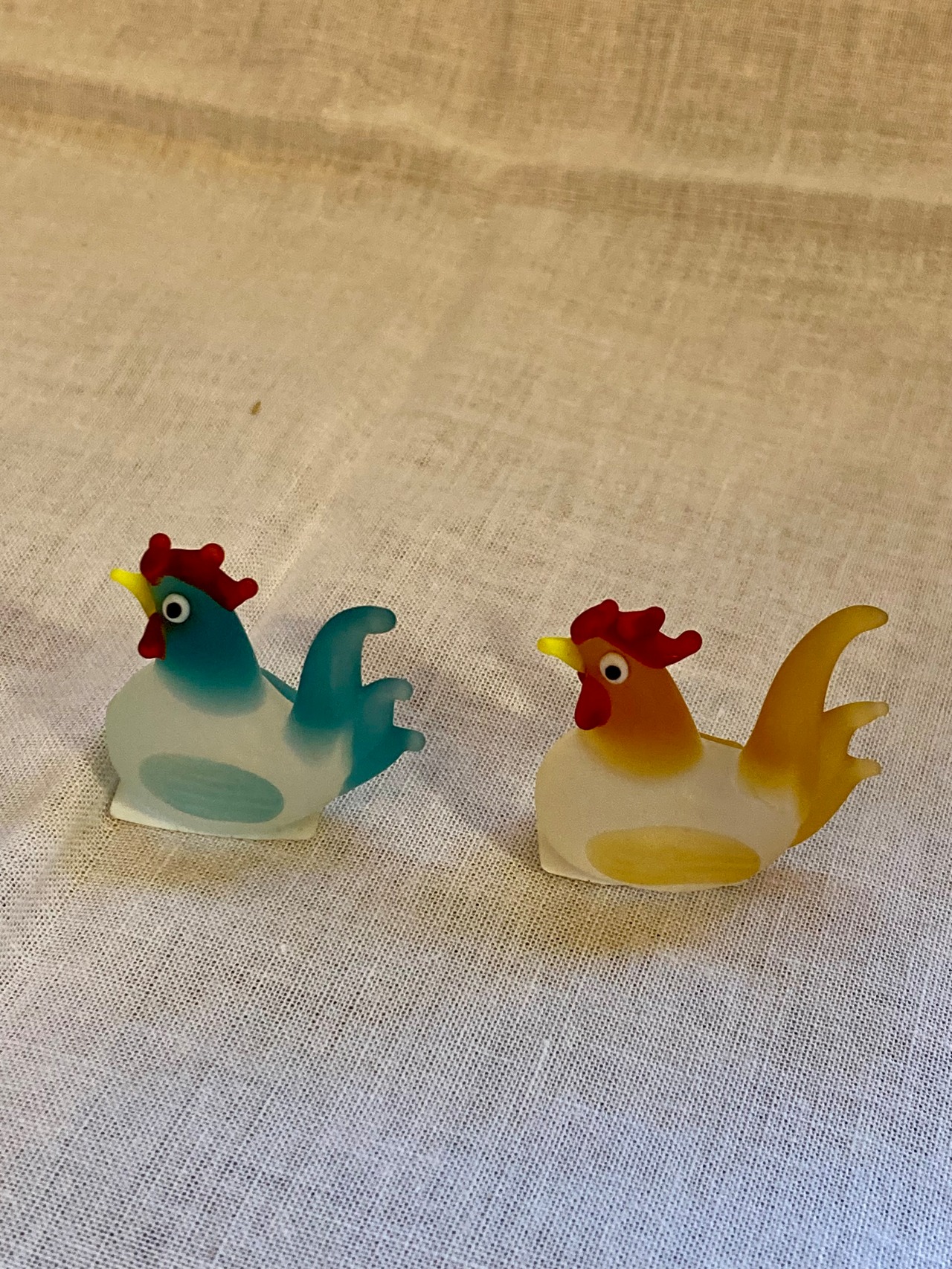 磨りガラスの可愛らしいニワトリの置物