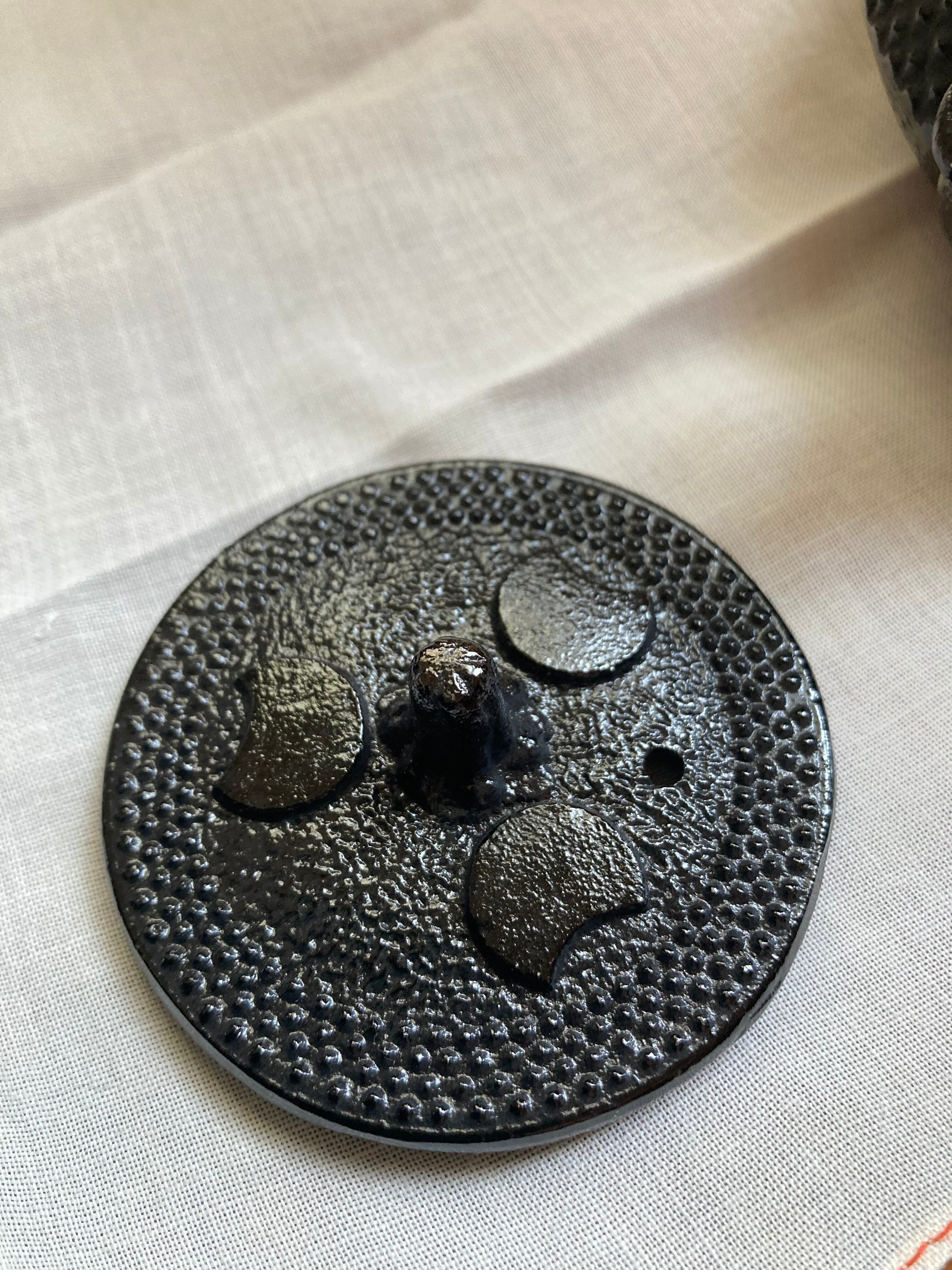 どっしりした重み、あられ模様の南部鉄器、急須です