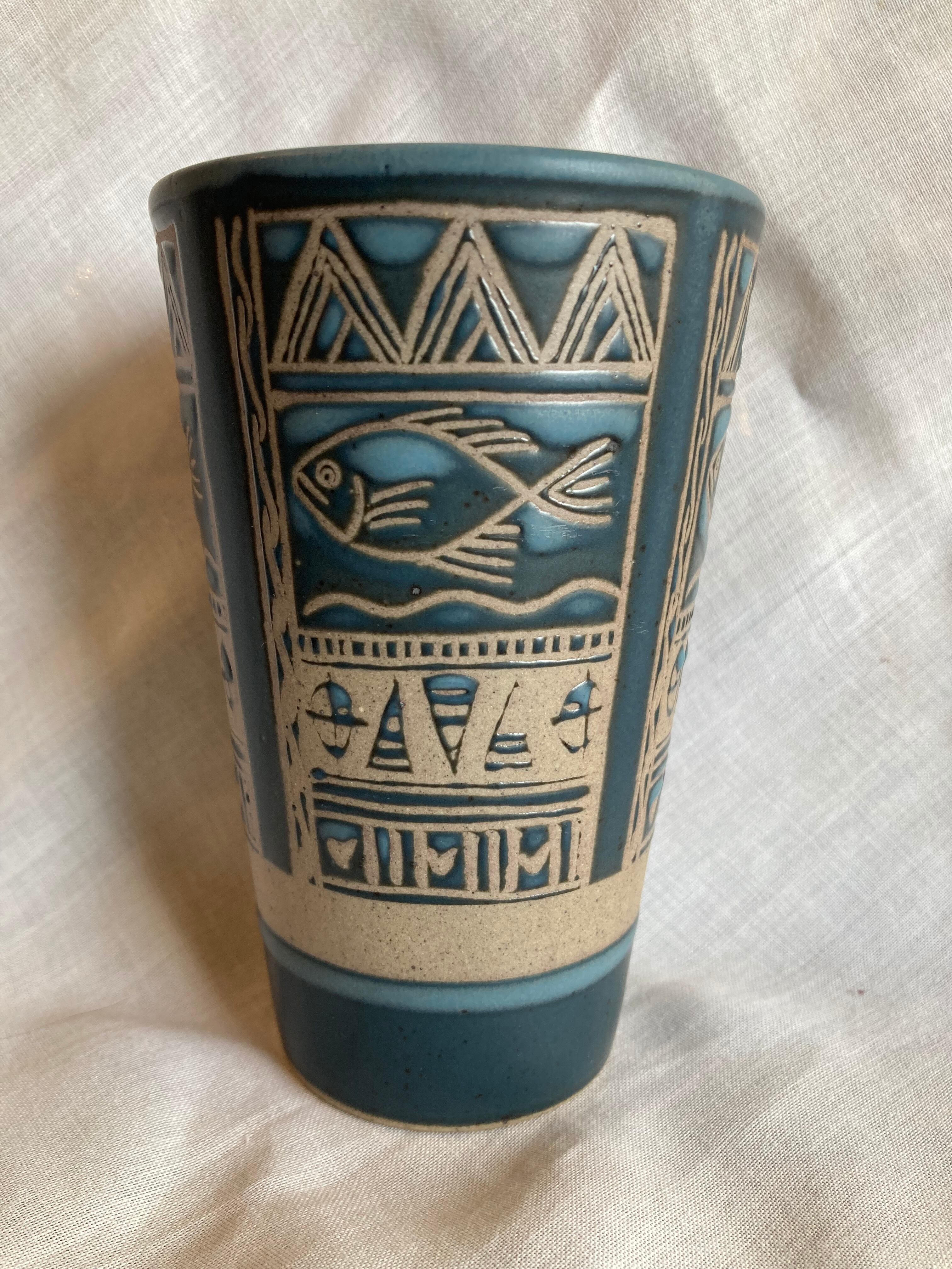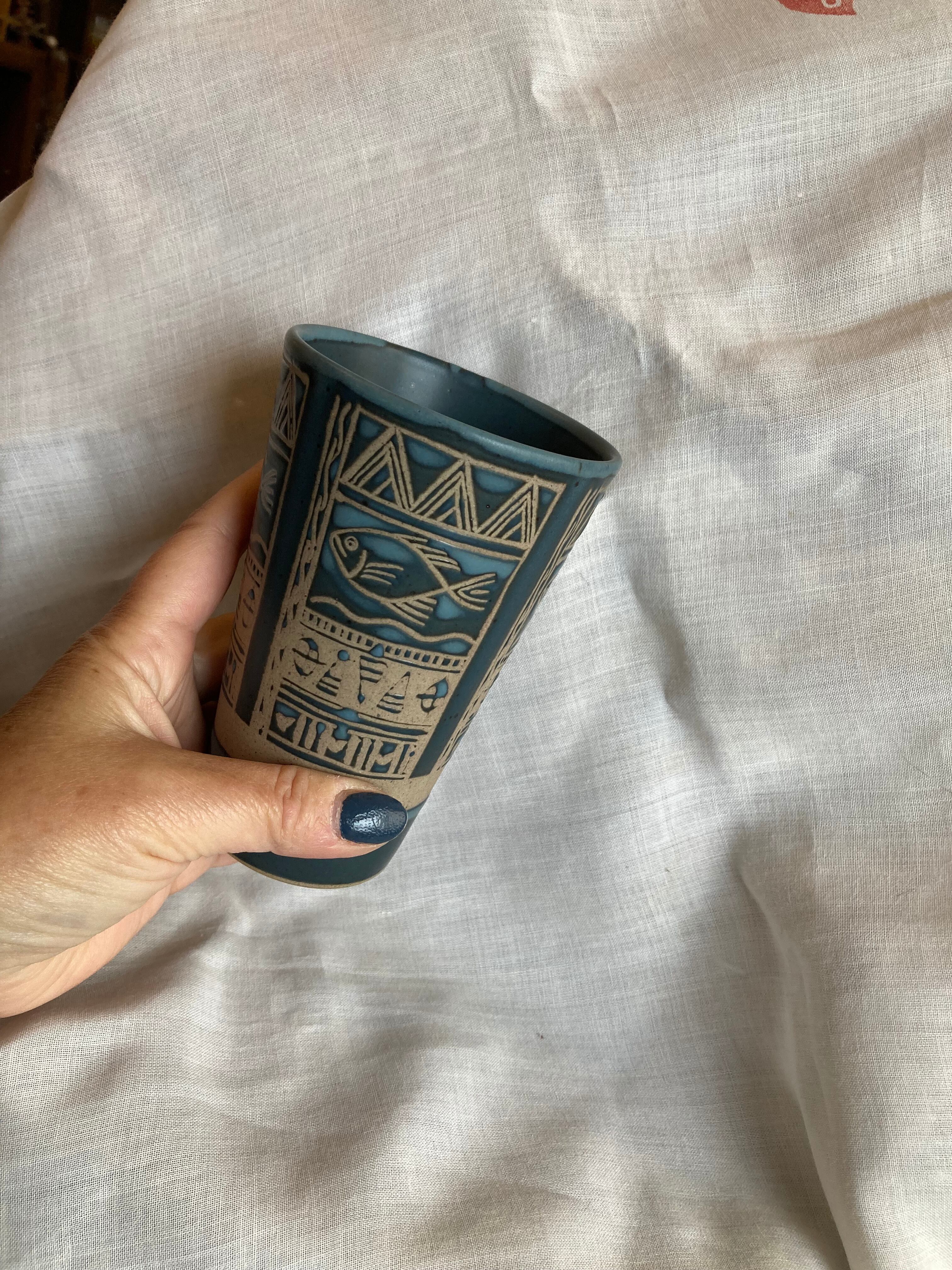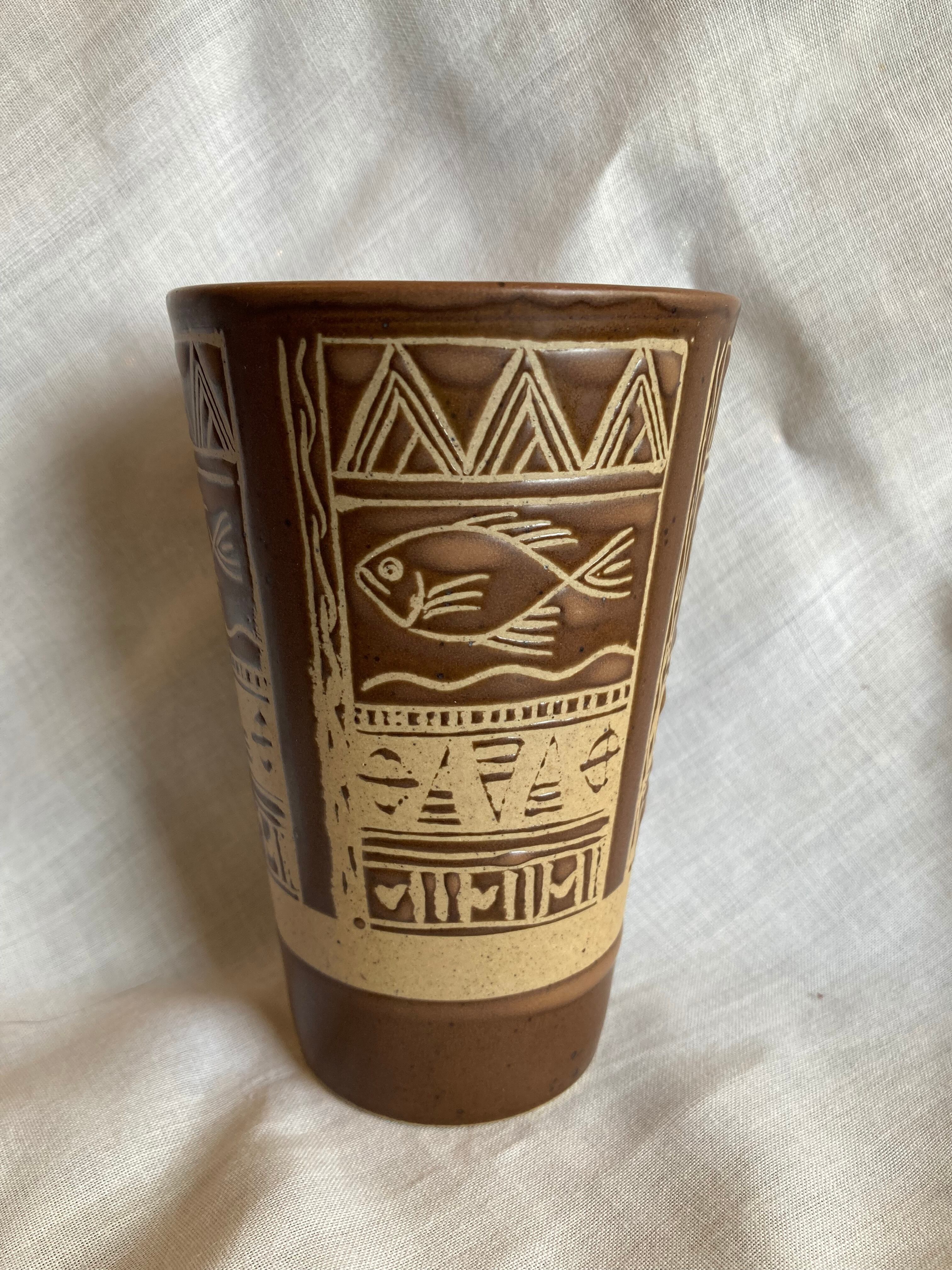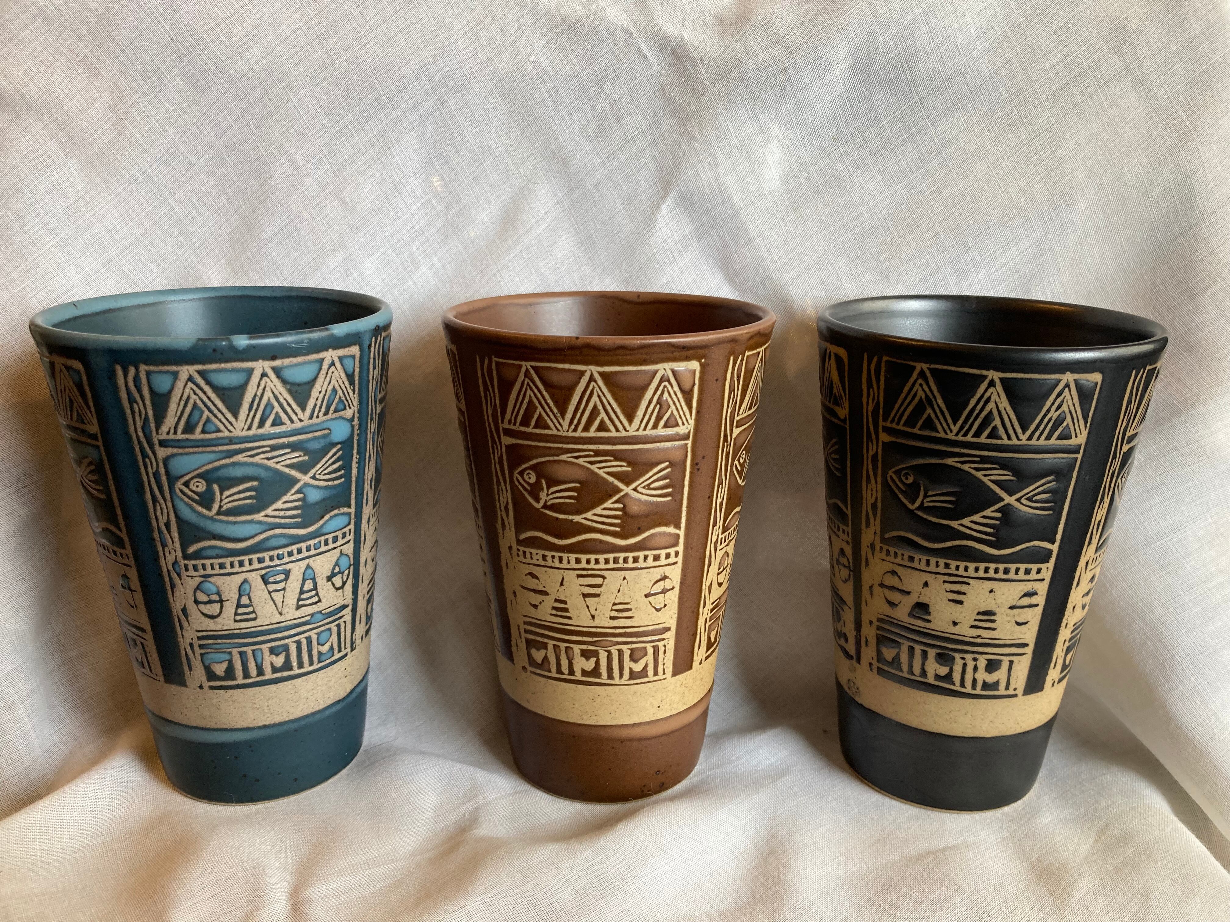 ちょっぴりエスニック⁈ お魚模様の陶器ビアジョッキ 3個セット