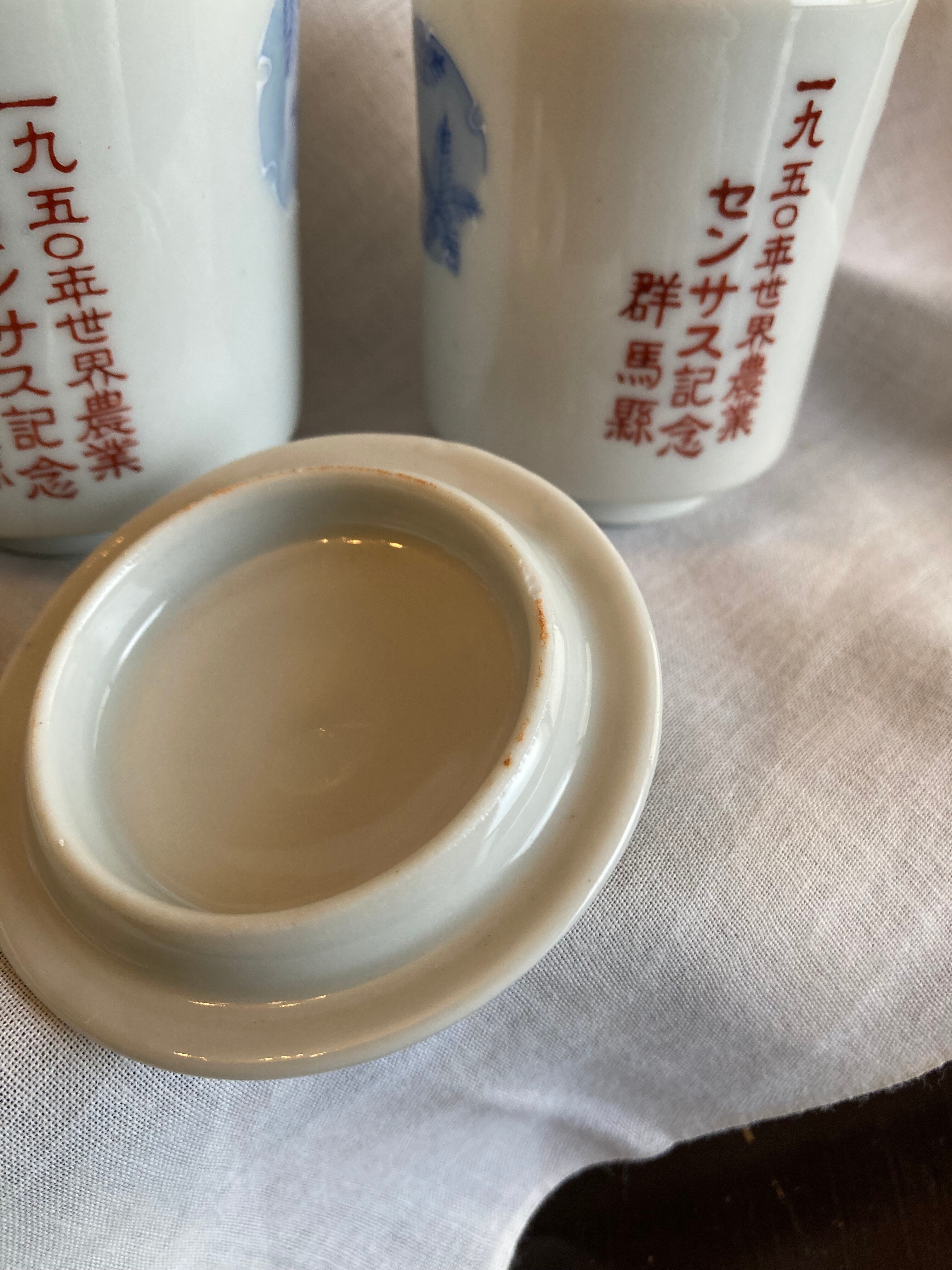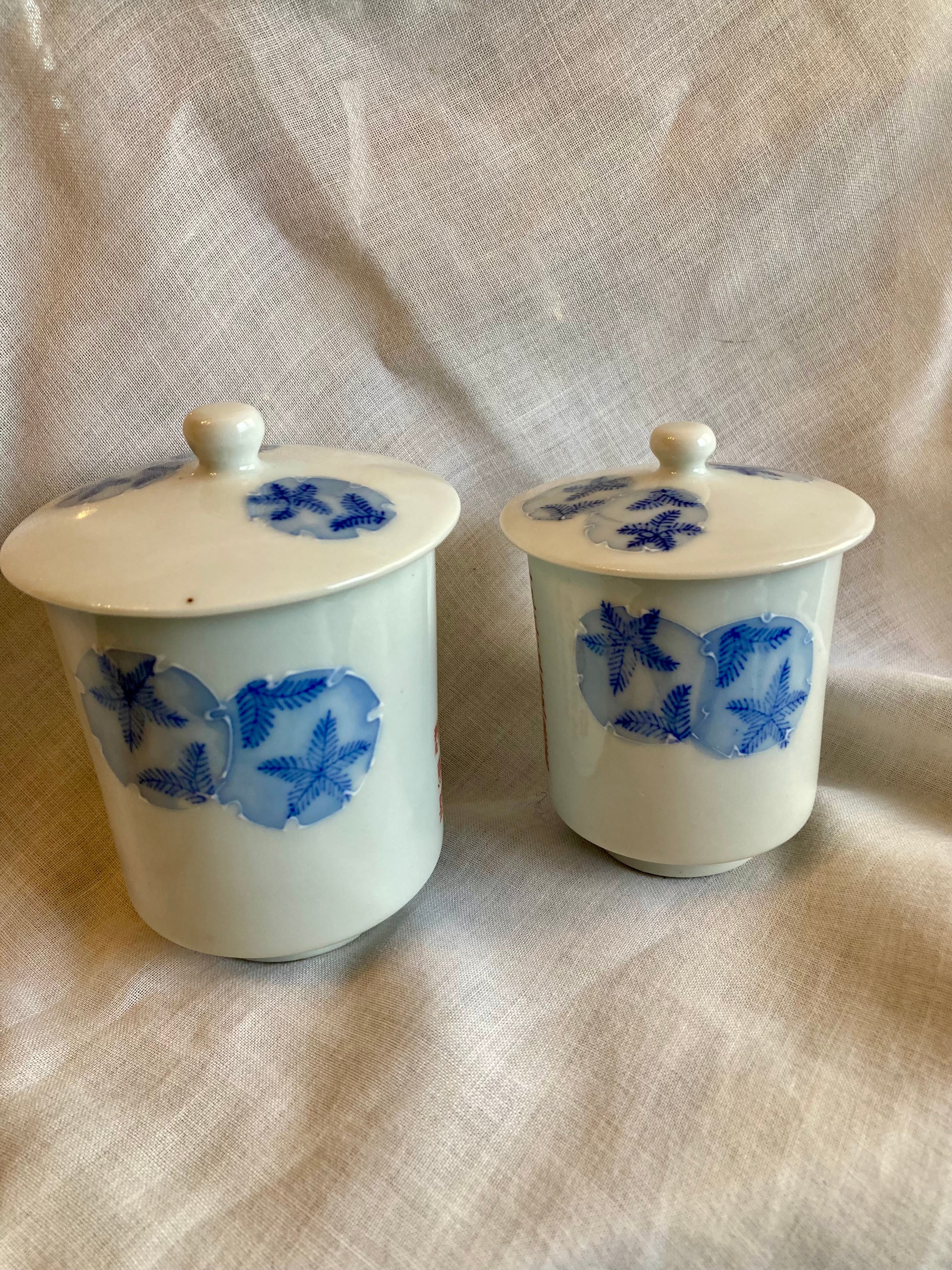昭和ロマン♪ 1950年製 蓋付き夫婦湯呑み茶碗セット