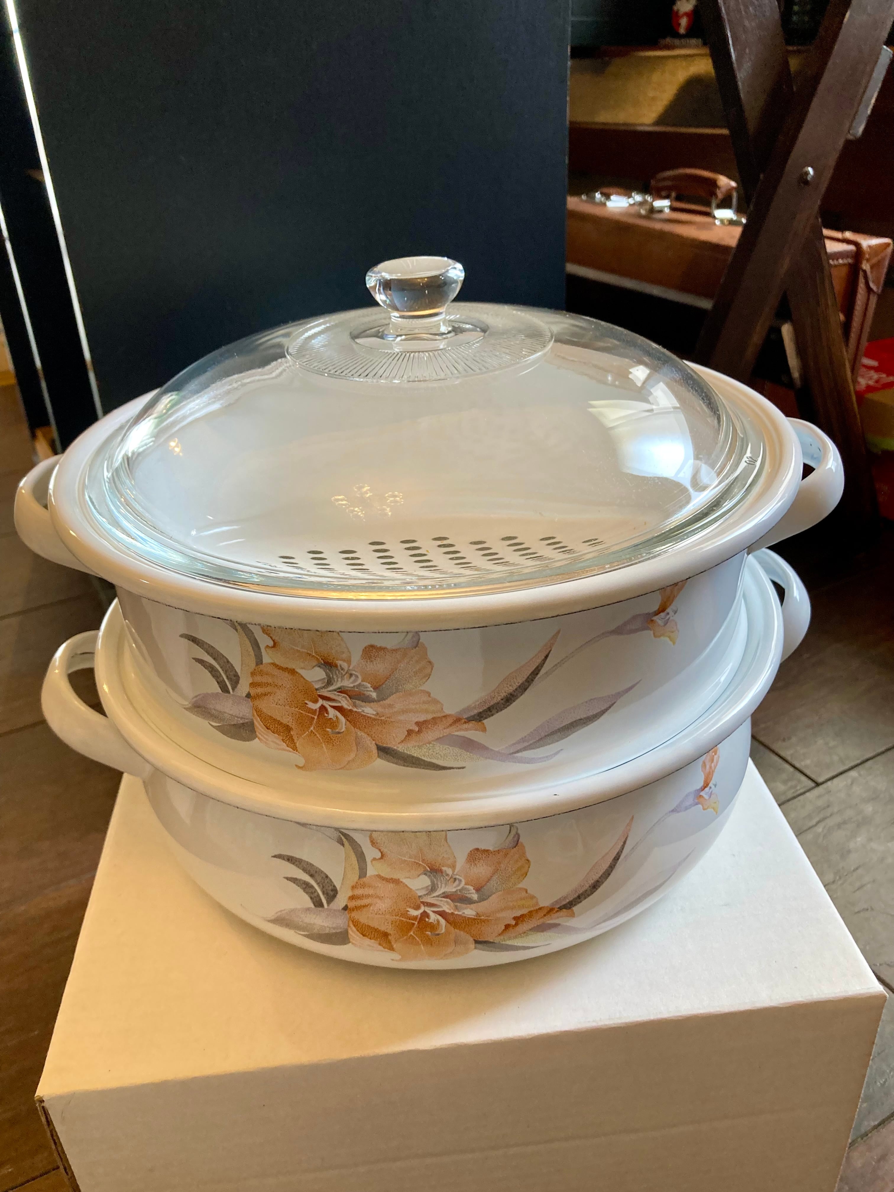 可愛い蒸し器なので、上段➕ガラス蓋でそのまま食卓にだしても♪