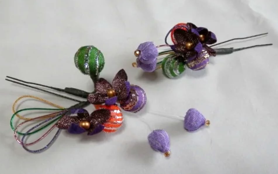 薄紫の蕾以外の飾りはワイヤーになっていますので