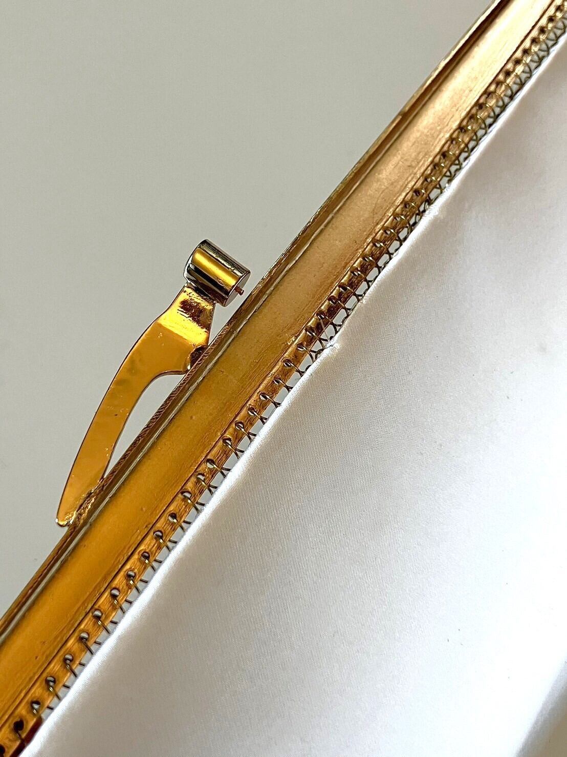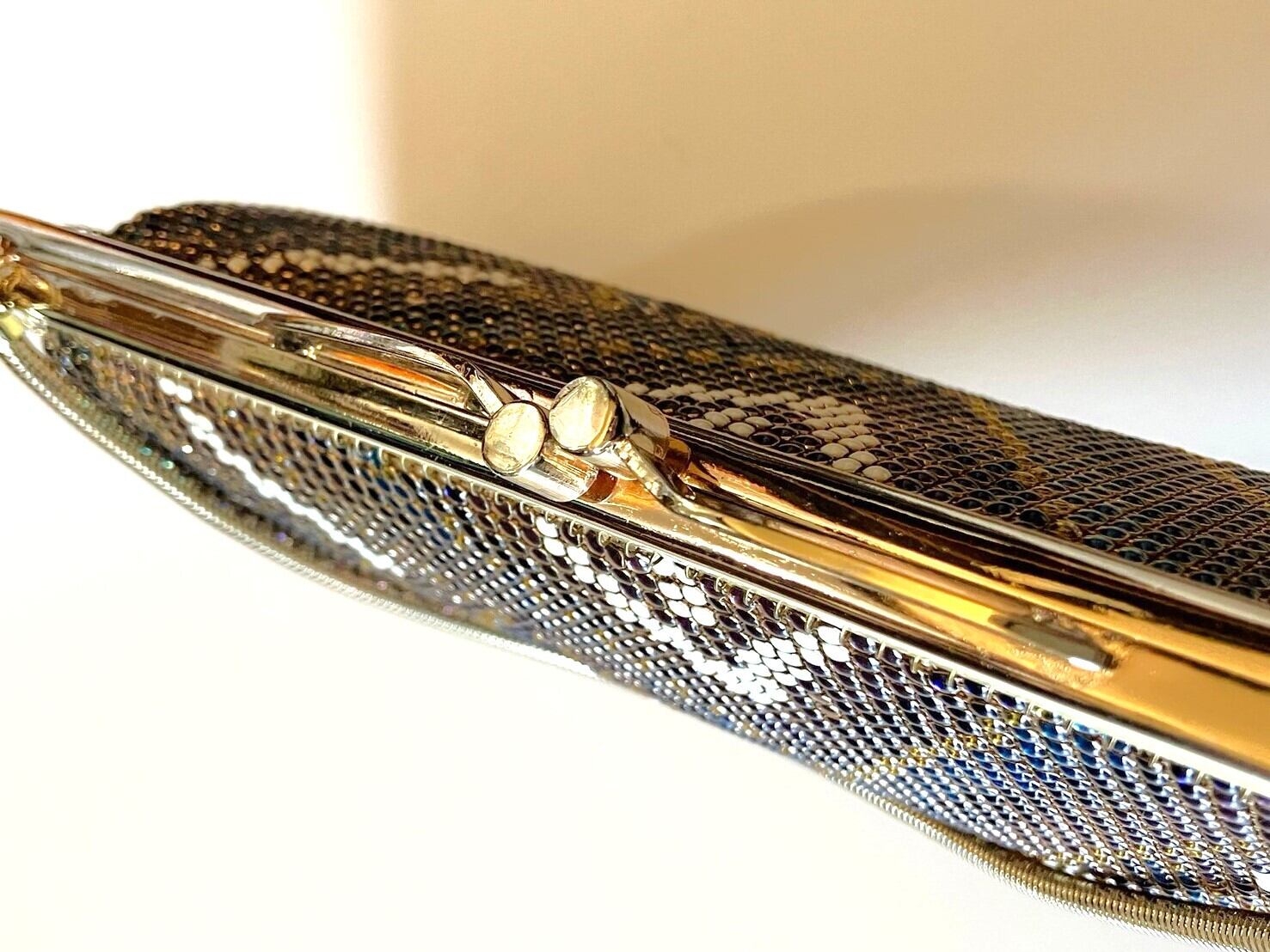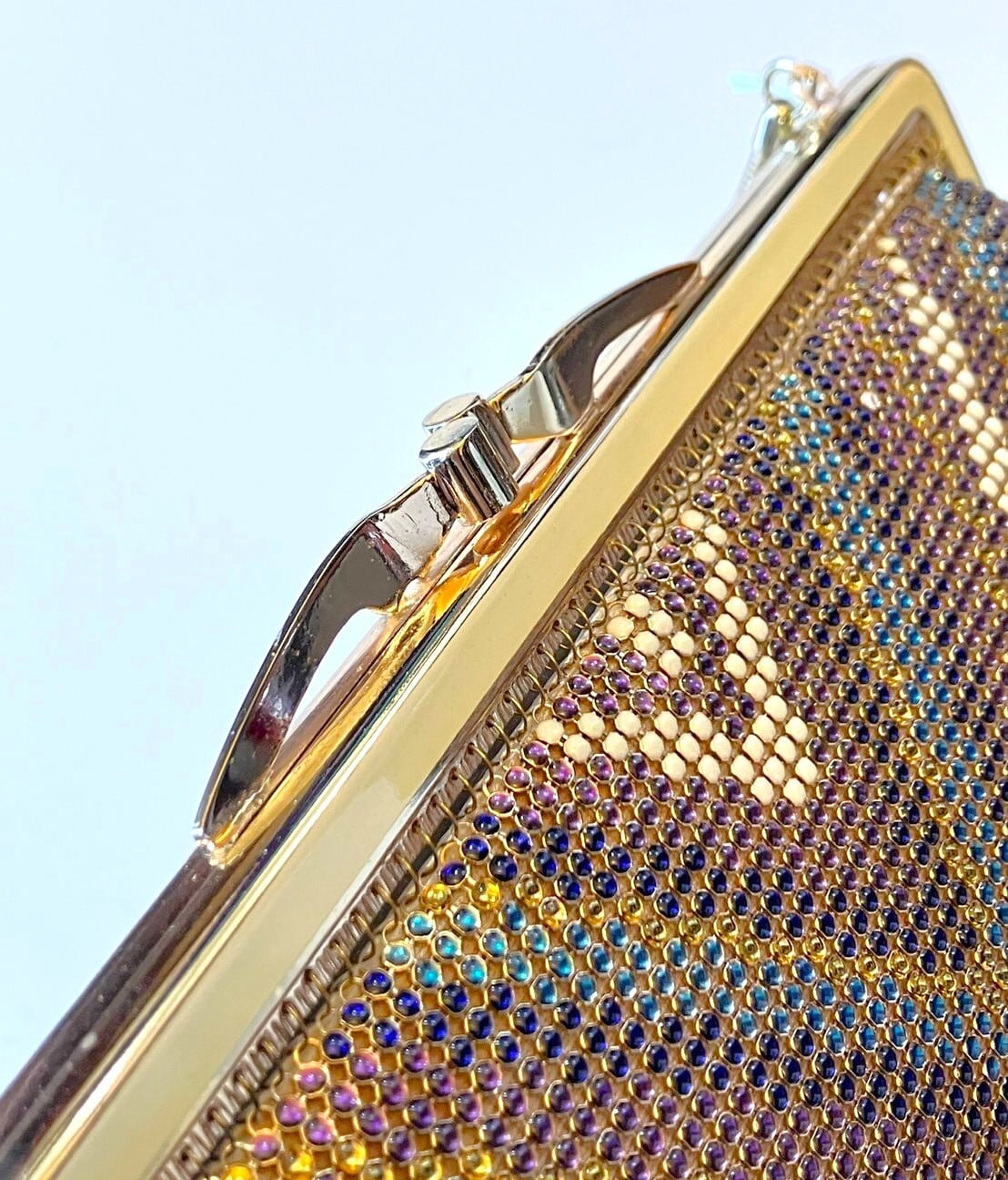 ゴールド&紫のビーズバッグ|がま口 丸いビーズがキラキラ!薄型ハンドバッグ 昭和レトロファッション